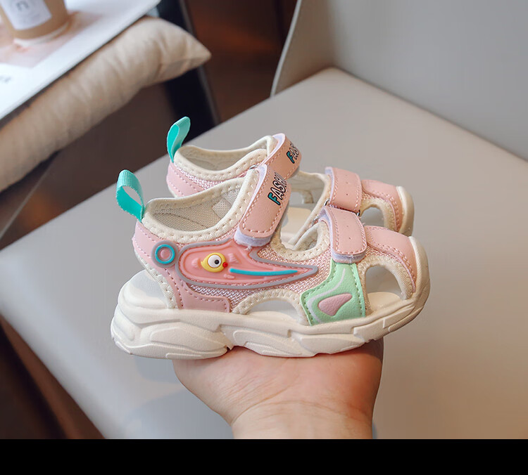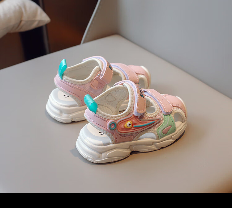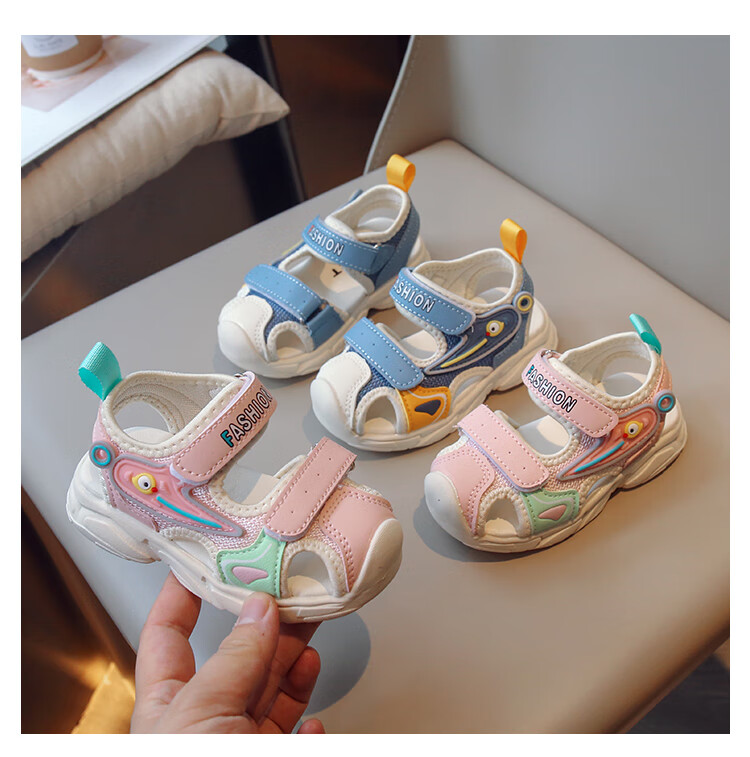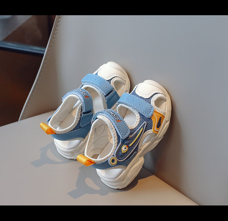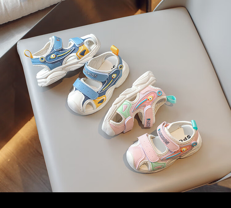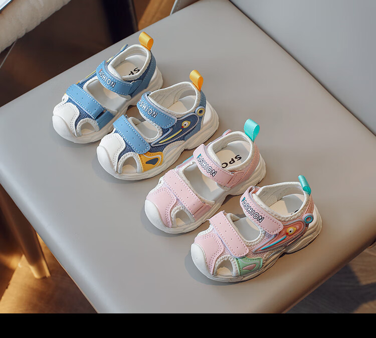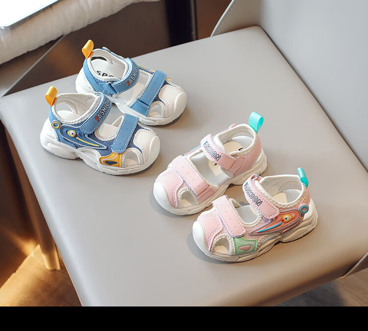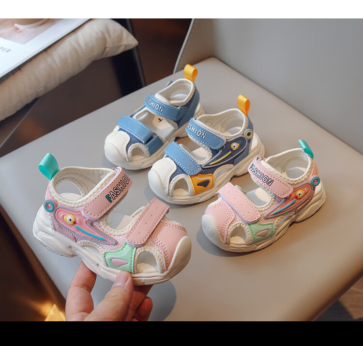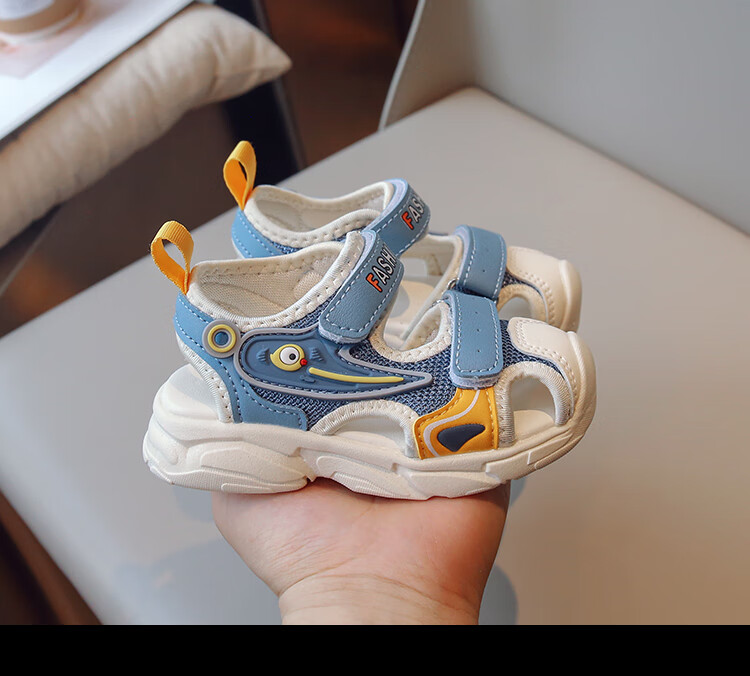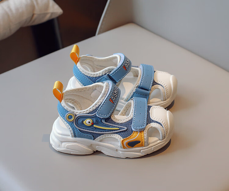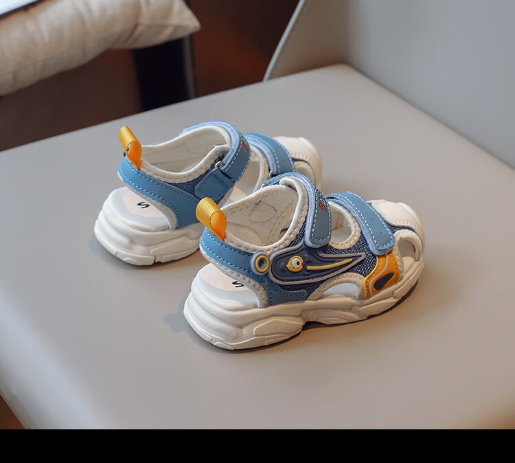 2025 Spring New Soft Sole Anti-Slip Boys' Baotou Sandals Cartoon Baby Breathable Toddler Shoes Girls' Shoes Blue 24 Inner Length 15cm