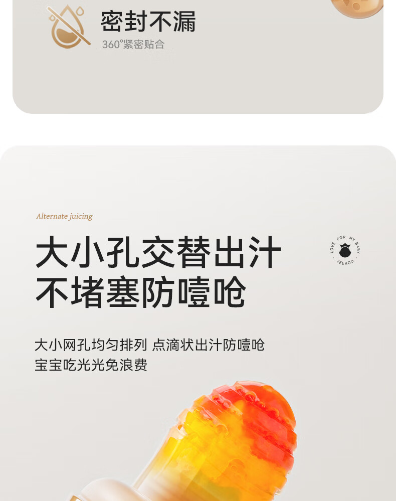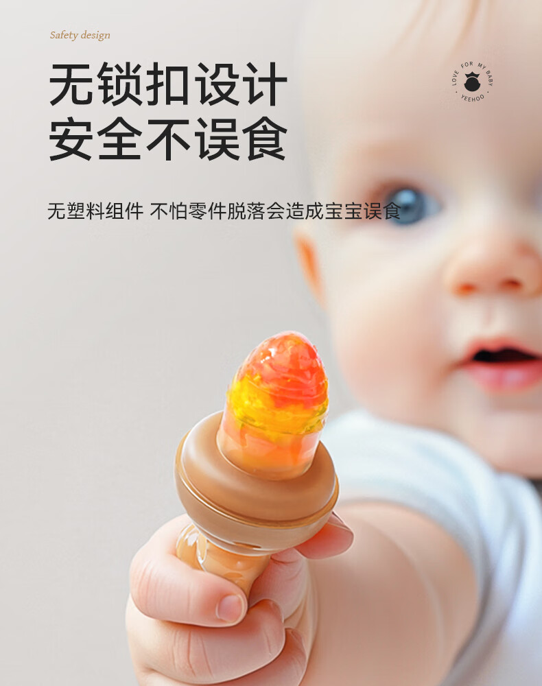 YEEHOO baby bite bag, fruit and vegetable food supplement, fruit and vegetable music juice mud, baby teether and molar stick, full silicone, M size + anti-lost rope, 9 months + +120ml 1 pack