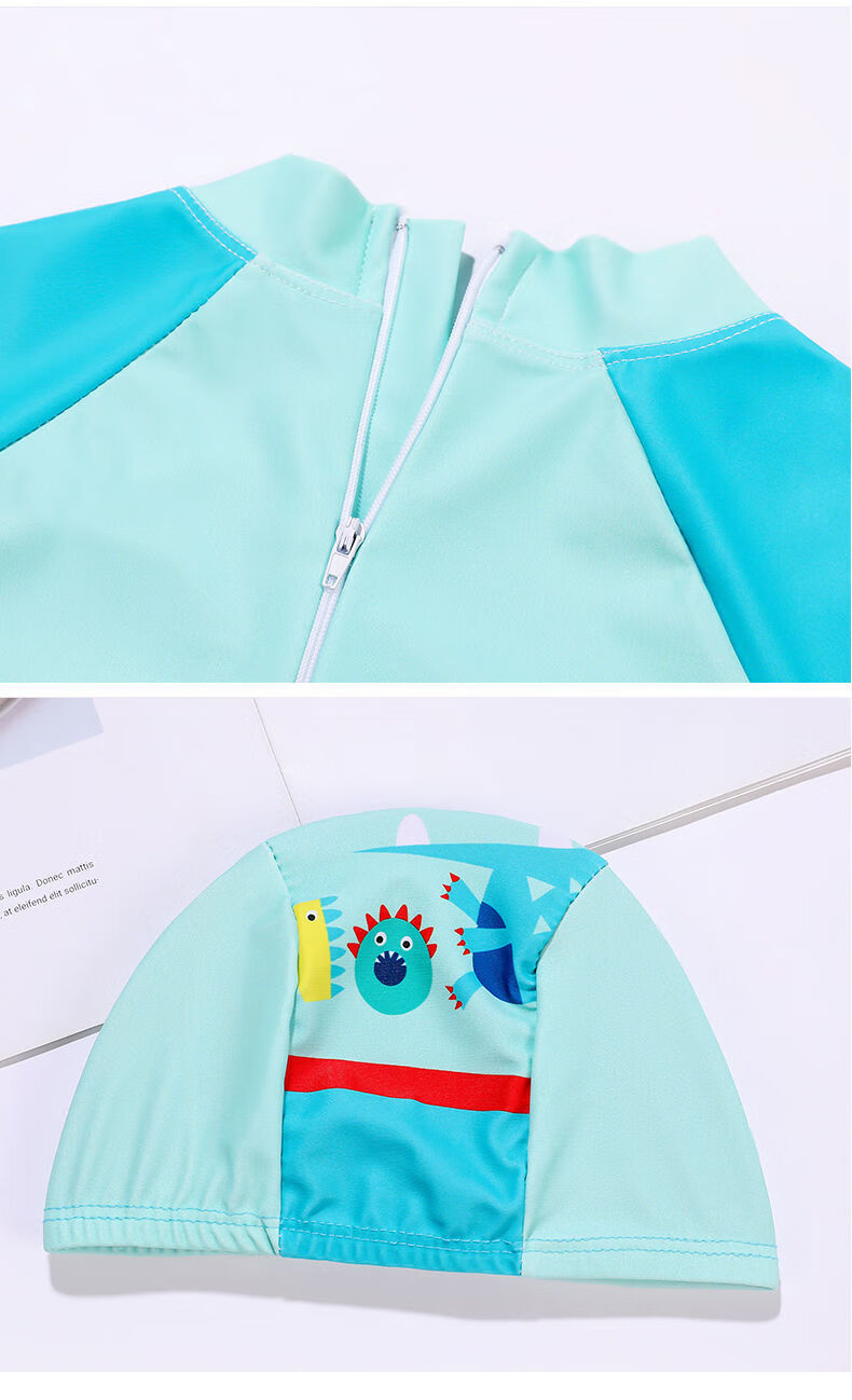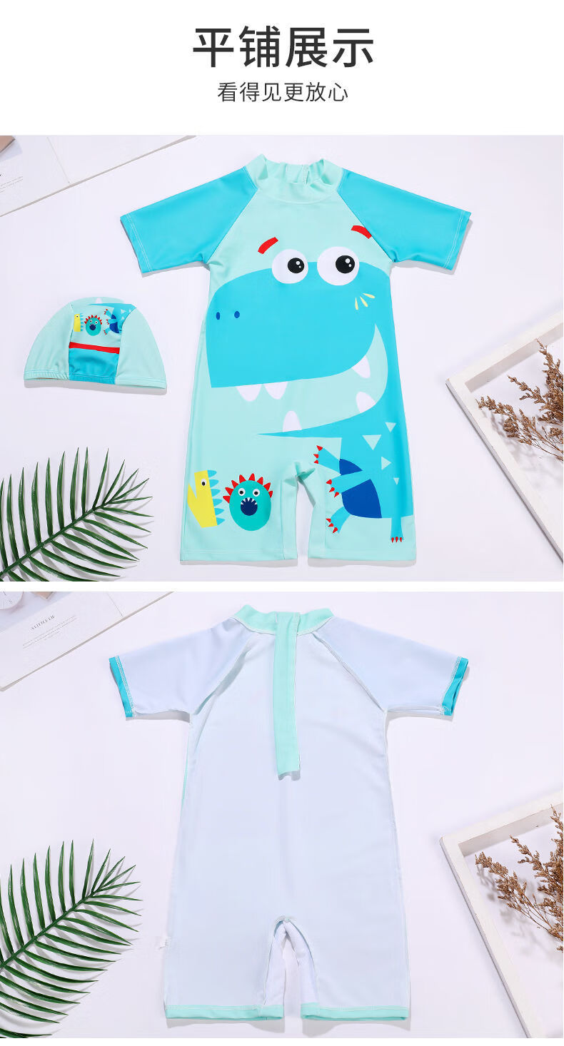 Shanye children's swimsuit boy one-piece small, medium and large children's swimsuit equipment student boy suit pants swimsuit playful T-Rex swimming cap + swimming goggles + nose clip earplugs XL recommended height 125-140cm