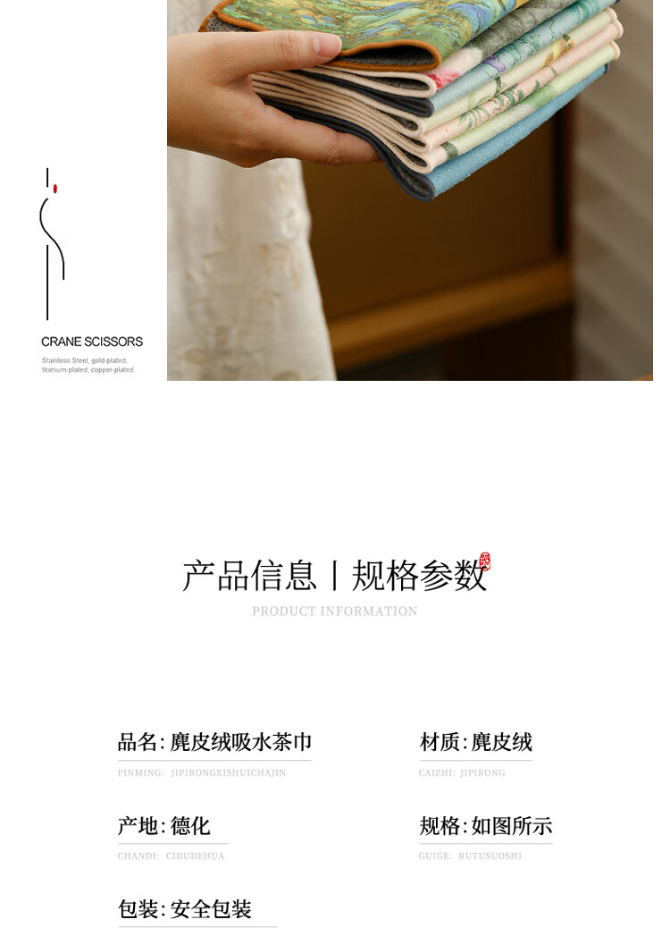 Water-absorbent thickened tea towel, tea cloth, tea set, tea table towel, coffee table, tea cup, tablecloth, rag, tea mat, tea table special accessories, Xishang Branch 16.5 width*30.5cm length