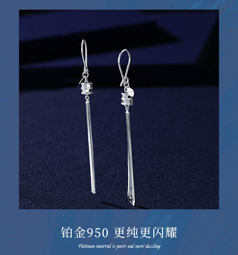 Shengshi Qiyuan platinum earrings ear wire pt950 genuine platinum ear hook earrings earrings platinum tassel small waist ear hook ear wire 3.5-3.8 grams (pair)