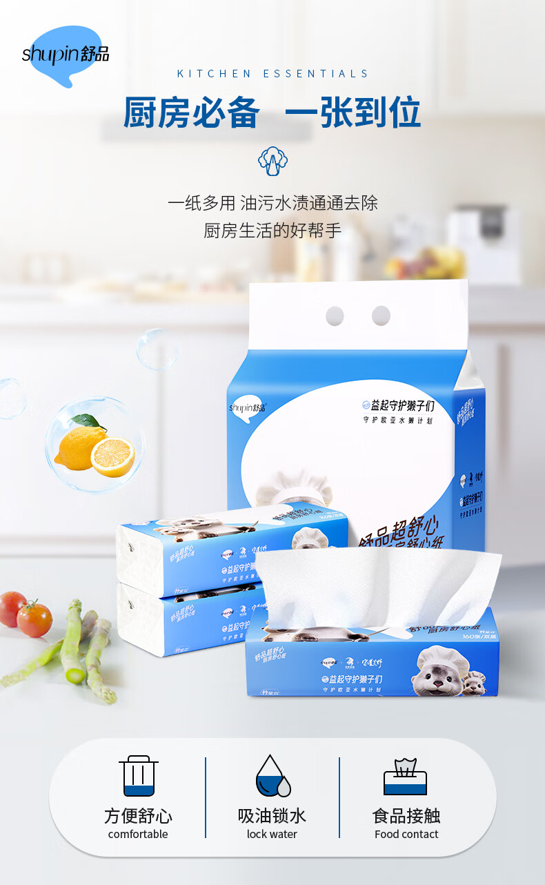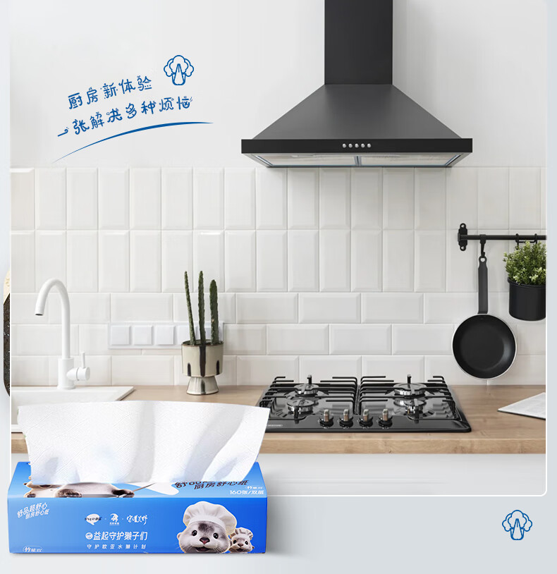 Authoritative food grade Little Otter kitchen paper absorbent water and oil absorbent paper lazy rag kitchen paper towel 2 layers 80 cigarettes * 1 pack