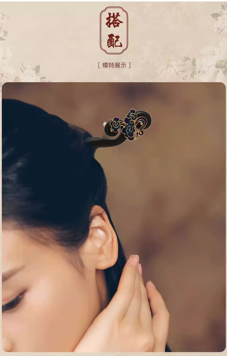 Su Shiliu ebony hairpin Xiangyun ancient style wooden hairpin Chinese style Hanfu hairpin birthday gift for wife and mother Xiangyun ebony hairpin