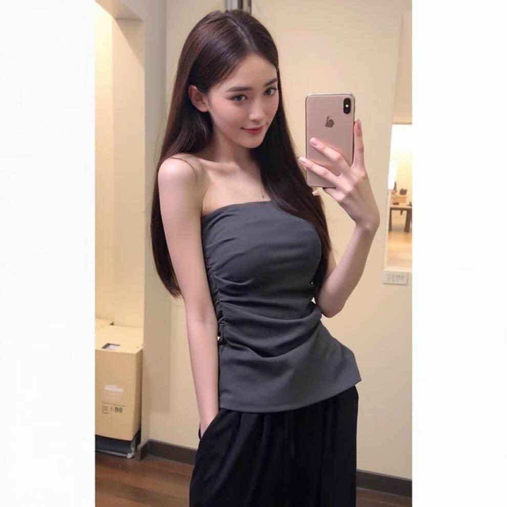 Chuangjingyi chooses French one-shoulder tube top black sexy slim hot girl slim sleeveless summer black S
