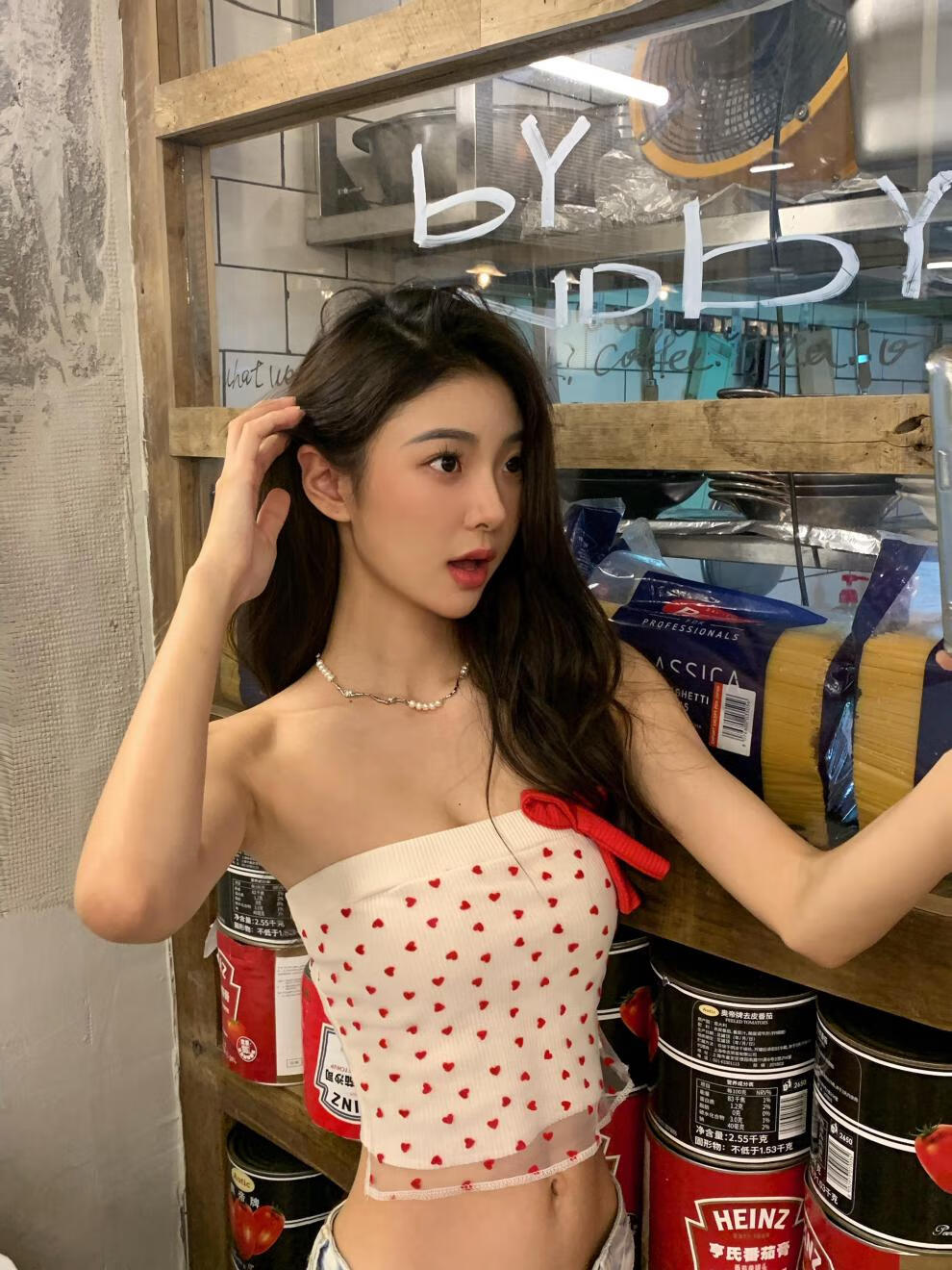 Chuangjingyi chooses hot girl love printed tube top, sexy strapless design, short vest for women, white M