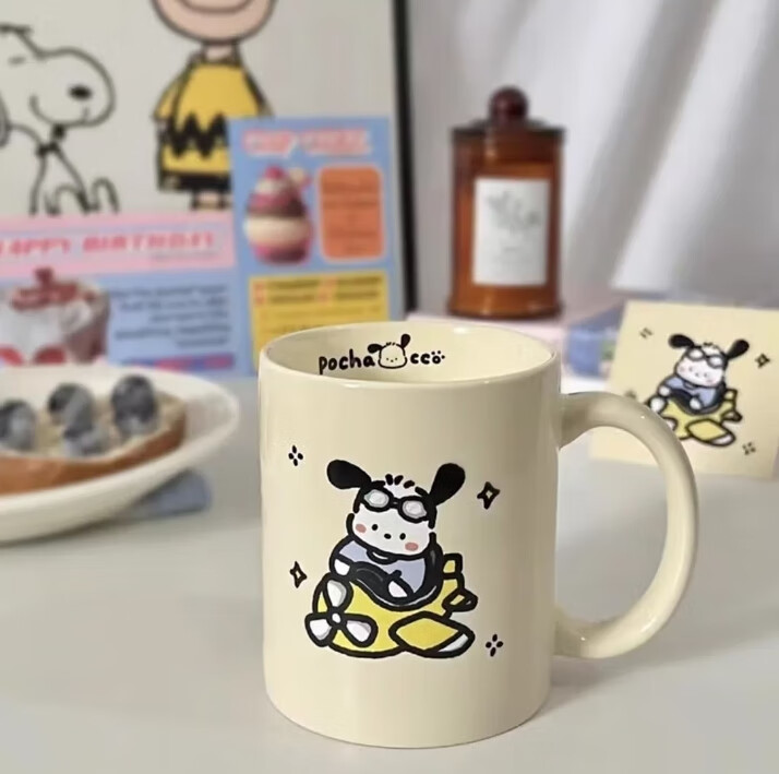Cute cheese plane puppy ceramic cup mug coffee cup birthday gift (single cup without box) puppy cup shipped randomly 1 piece 350ml