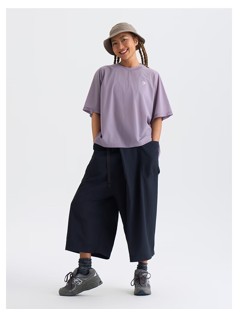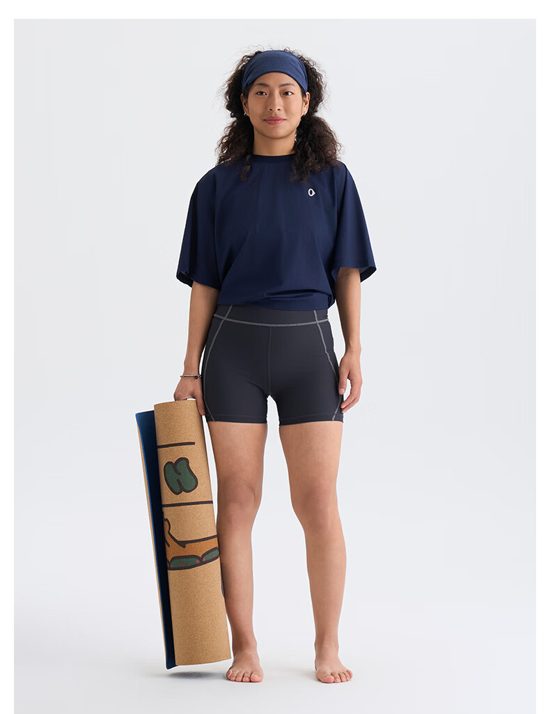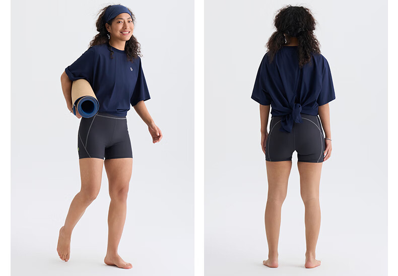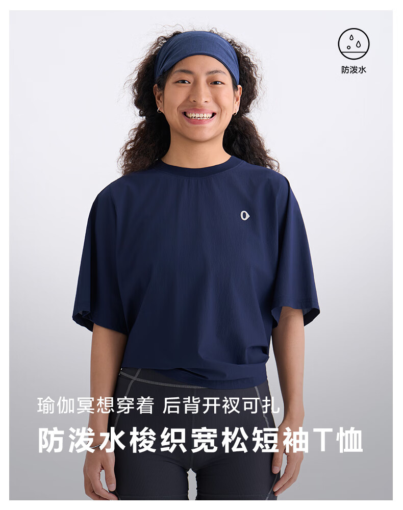 AnKoRau Women's New Yoga Pilates Loose Short-Sleeved T-shirt with Back Slit and Can Be Tie | AnKoRau Navy Blue 69 S