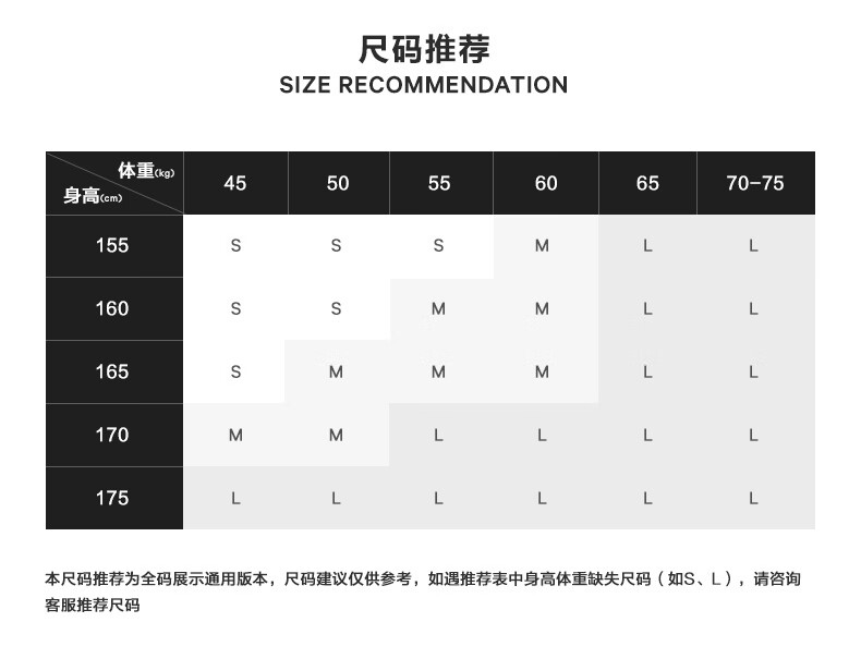 China (cm) 160-165/84-86 165-170 / 88-90 167-172 / 92-96 168-173 / 98-102 170-176 / 106-110