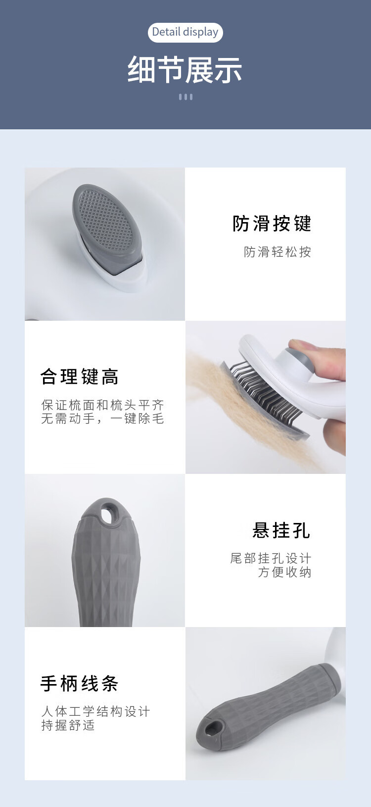 Lihao cat comb to remove floating hair, combing brush, dog hair removal, cat hair removal tool, cleaning long-haired pet, cat and dog supplies, best-selling model - gray, one-click hair removal, pet needle comb