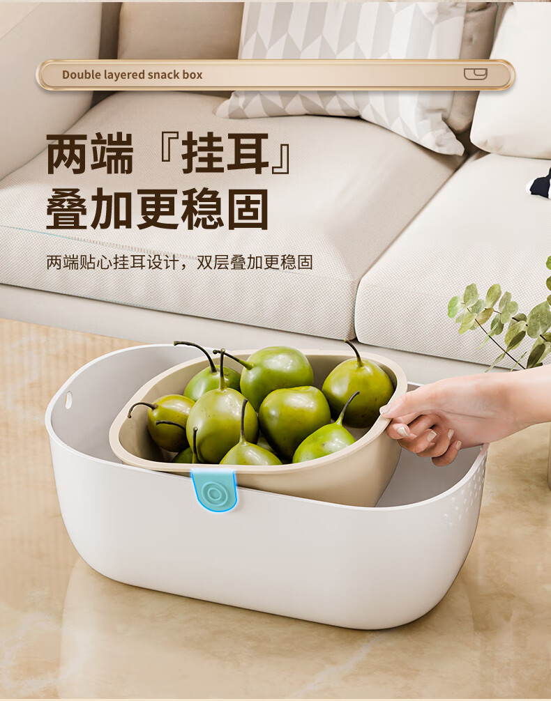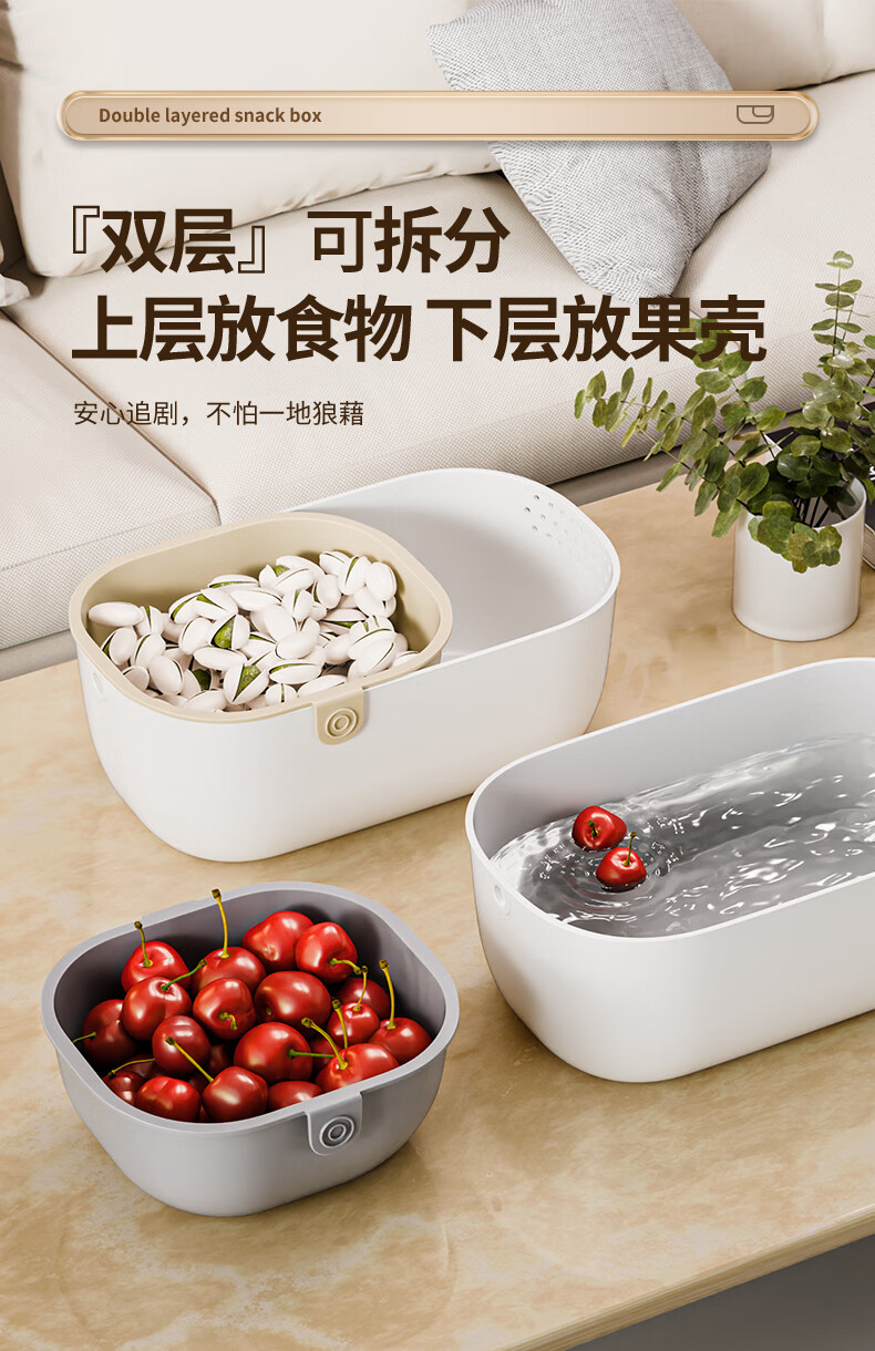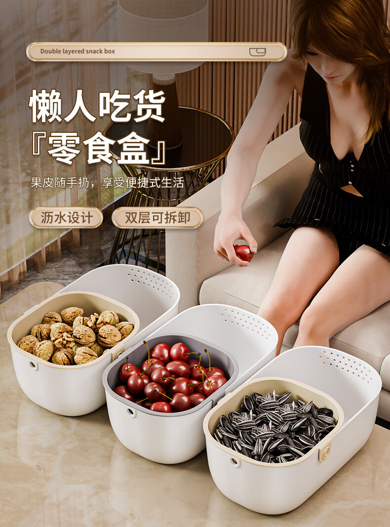 Lazy melon seeds snacks dried fruits fruit box double layer thickened living room drain basket household fruit plate drain tray milky white - 1 pack