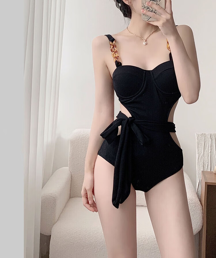 Tanbeiman One-piece Bikini Swimsuit Feminine Hot Spring Pure Desire Beach Wear Backless Suspender Swimsuit Large Size Jumpsuit One-piece Bikini Black L Size (Recommended 100-110 Jin Jin is equal to 0.5 kg) Three-dimensional slimming