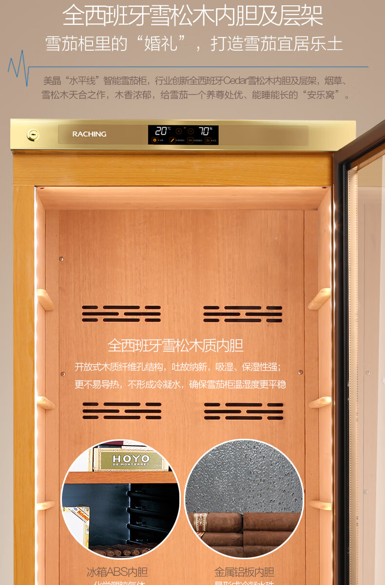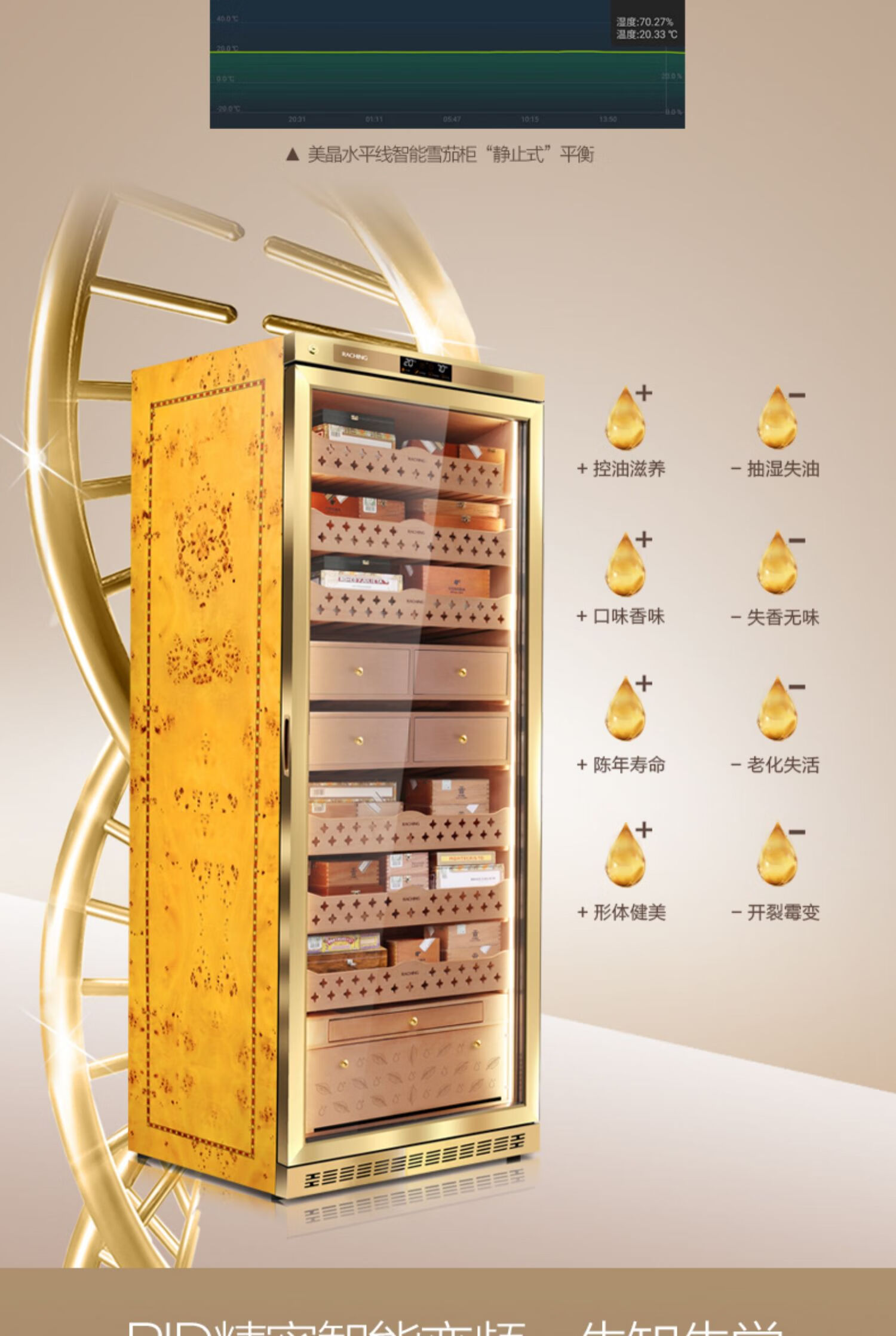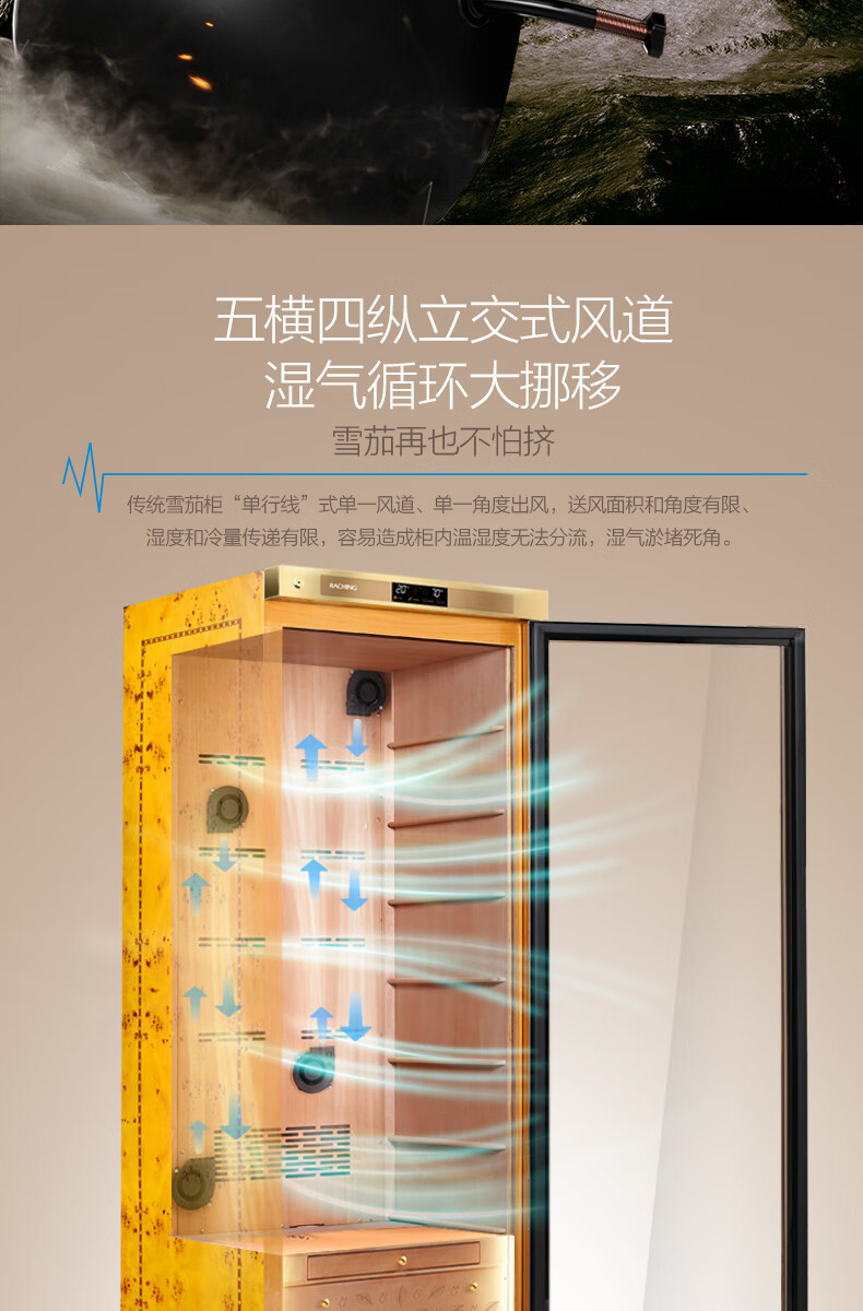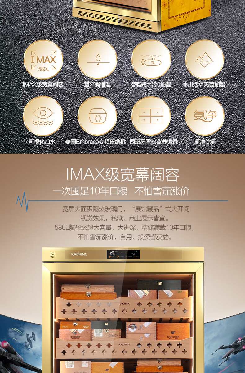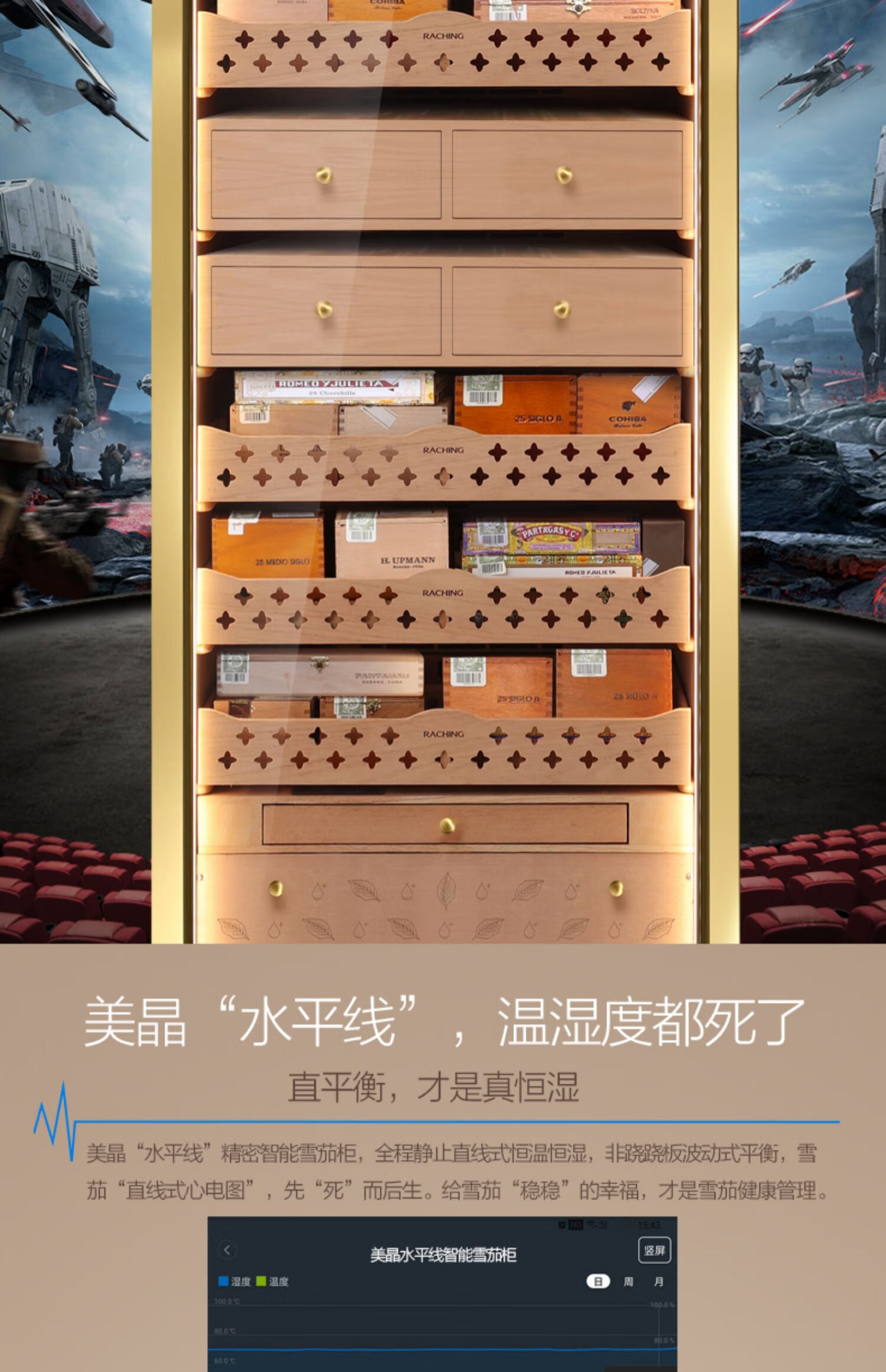 Meijing RACHING Meijing cigar cabinet MON5800A horizontal line series flagship model IMAX large capacity 580L intelligent water cooling and humidification technology constant temperature and humidity cigar humidifier upgraded ammonia purifier ~ starry sky black ~ Spanish shelf