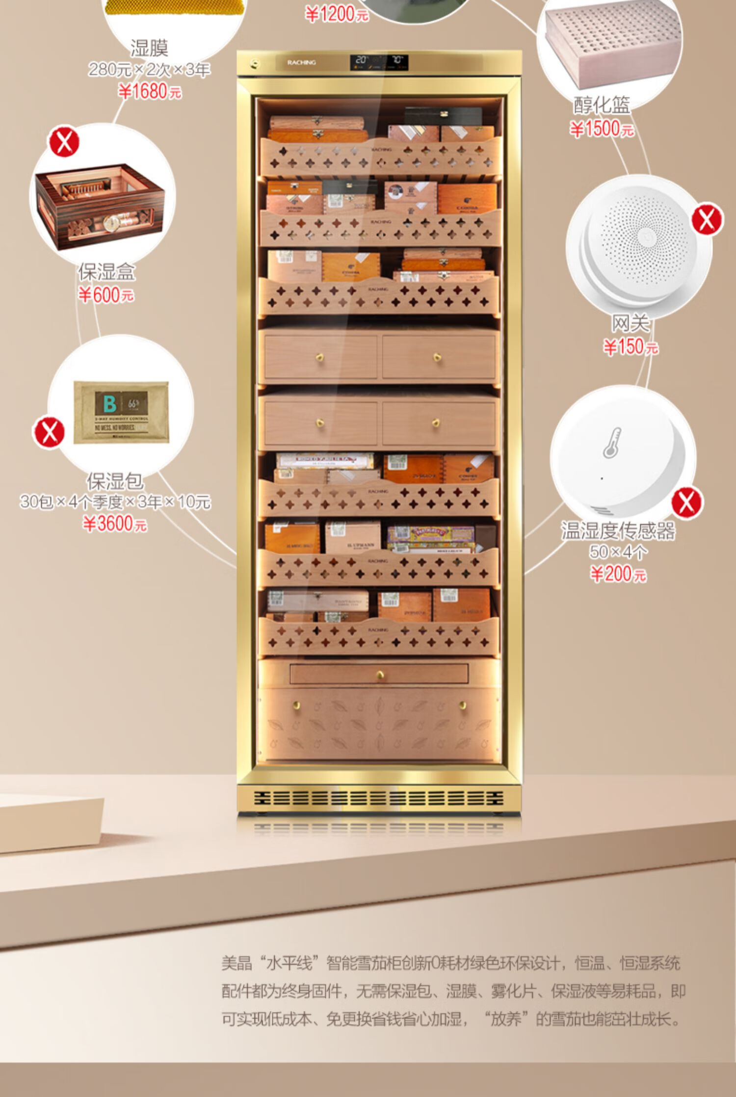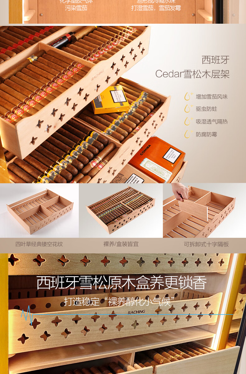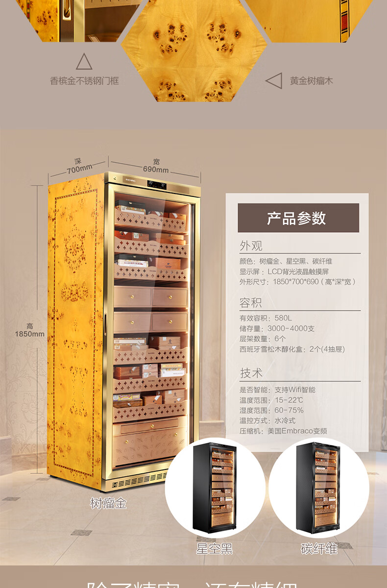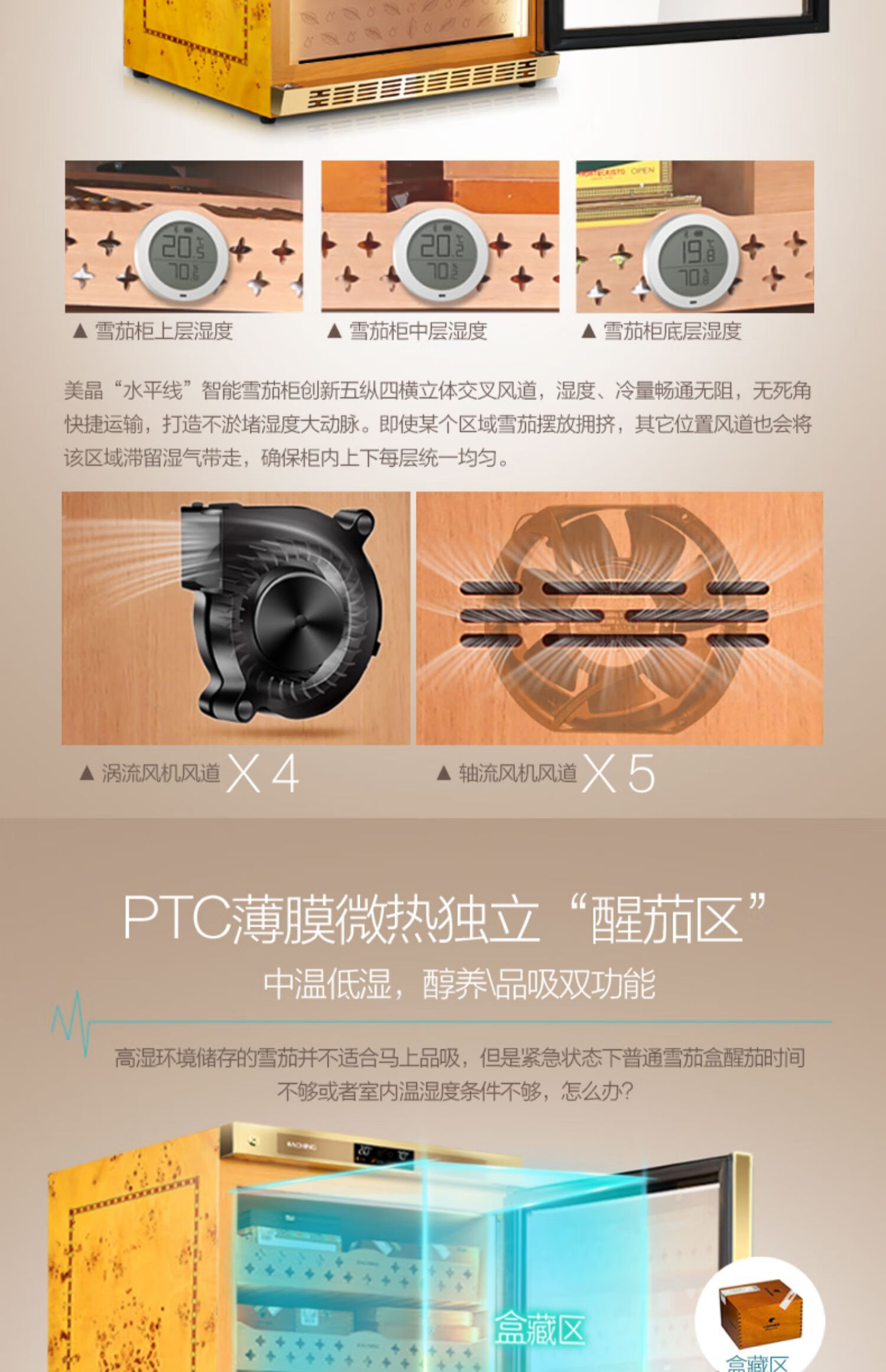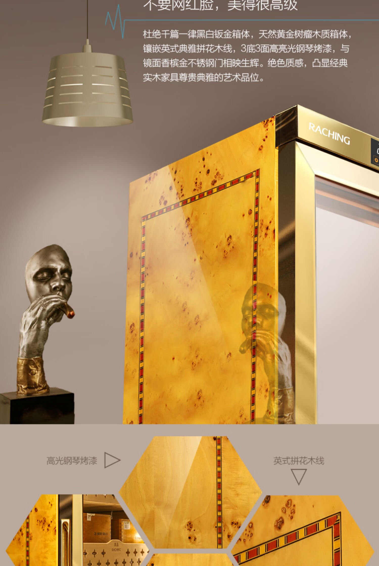 Meijing RACHING Meijing cigar cabinet MON5800A horizontal line series flagship model IMAX large capacity 580L intelligent water cooling and humidification technology constant temperature and humidity cigar humidifier upgraded ammonia purifier ~ starry sky black ~ Spanish shelf