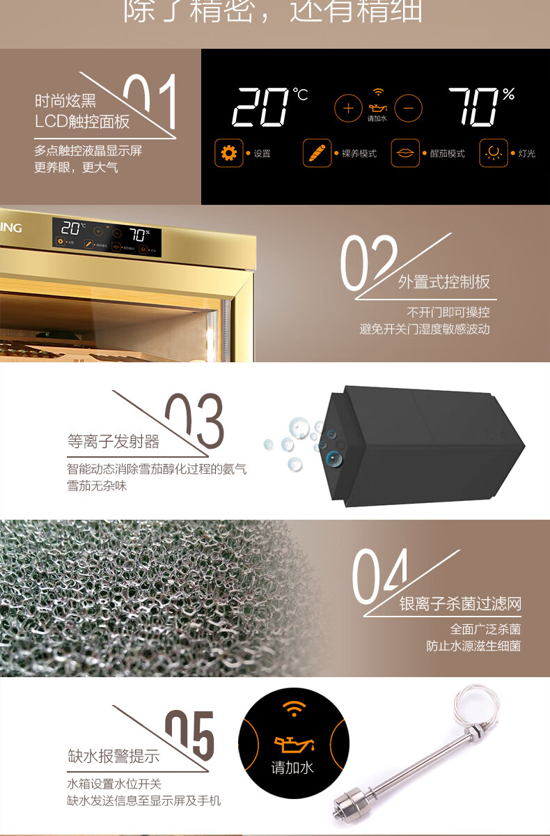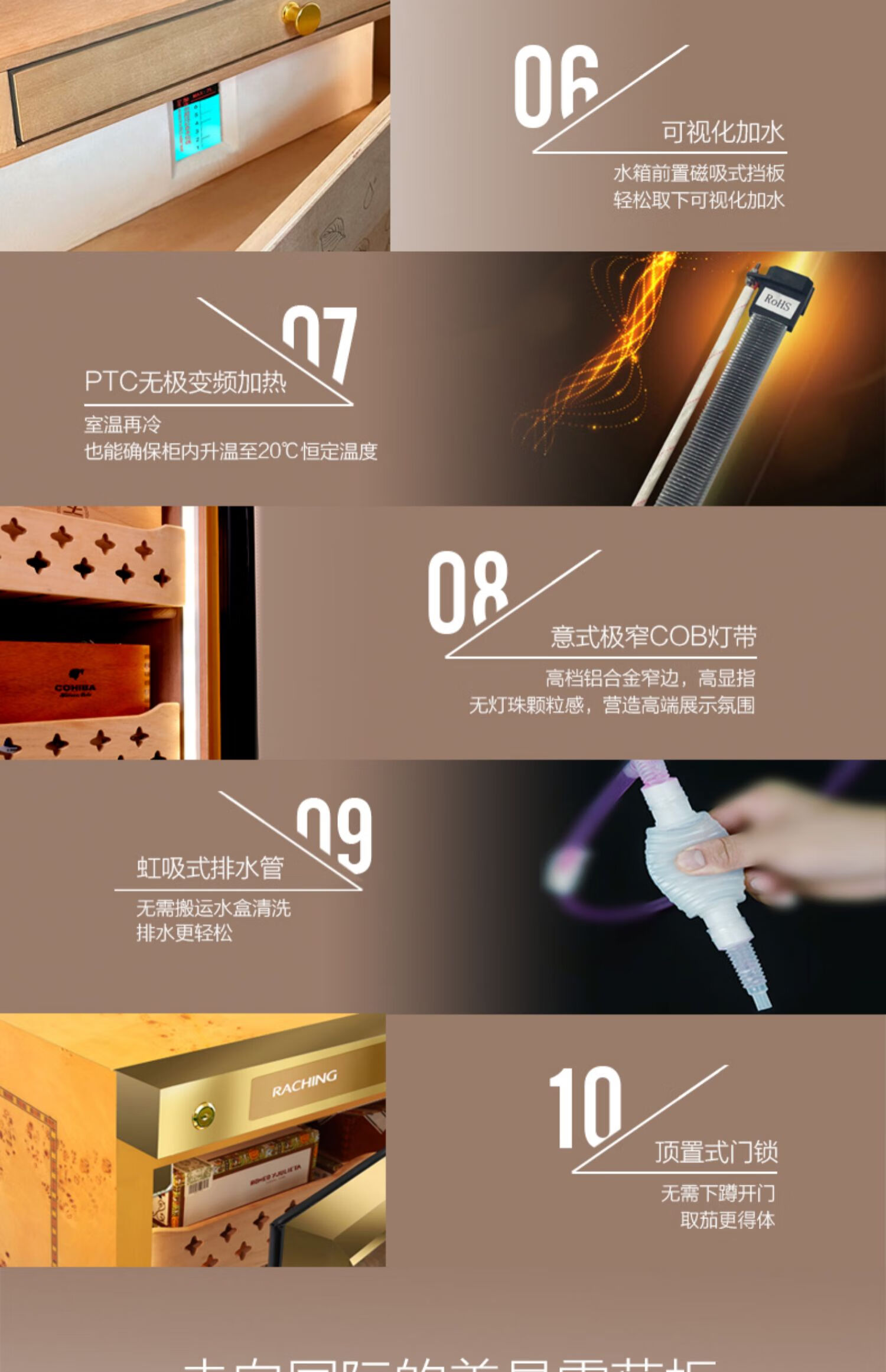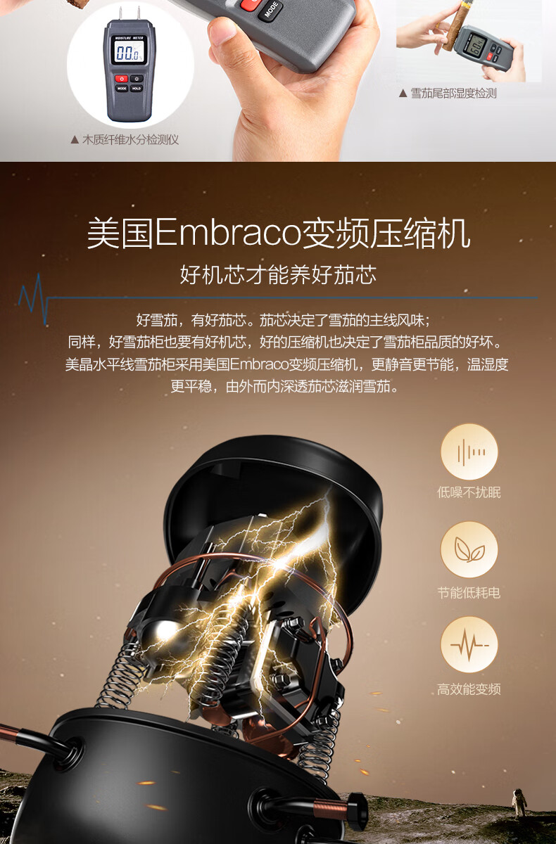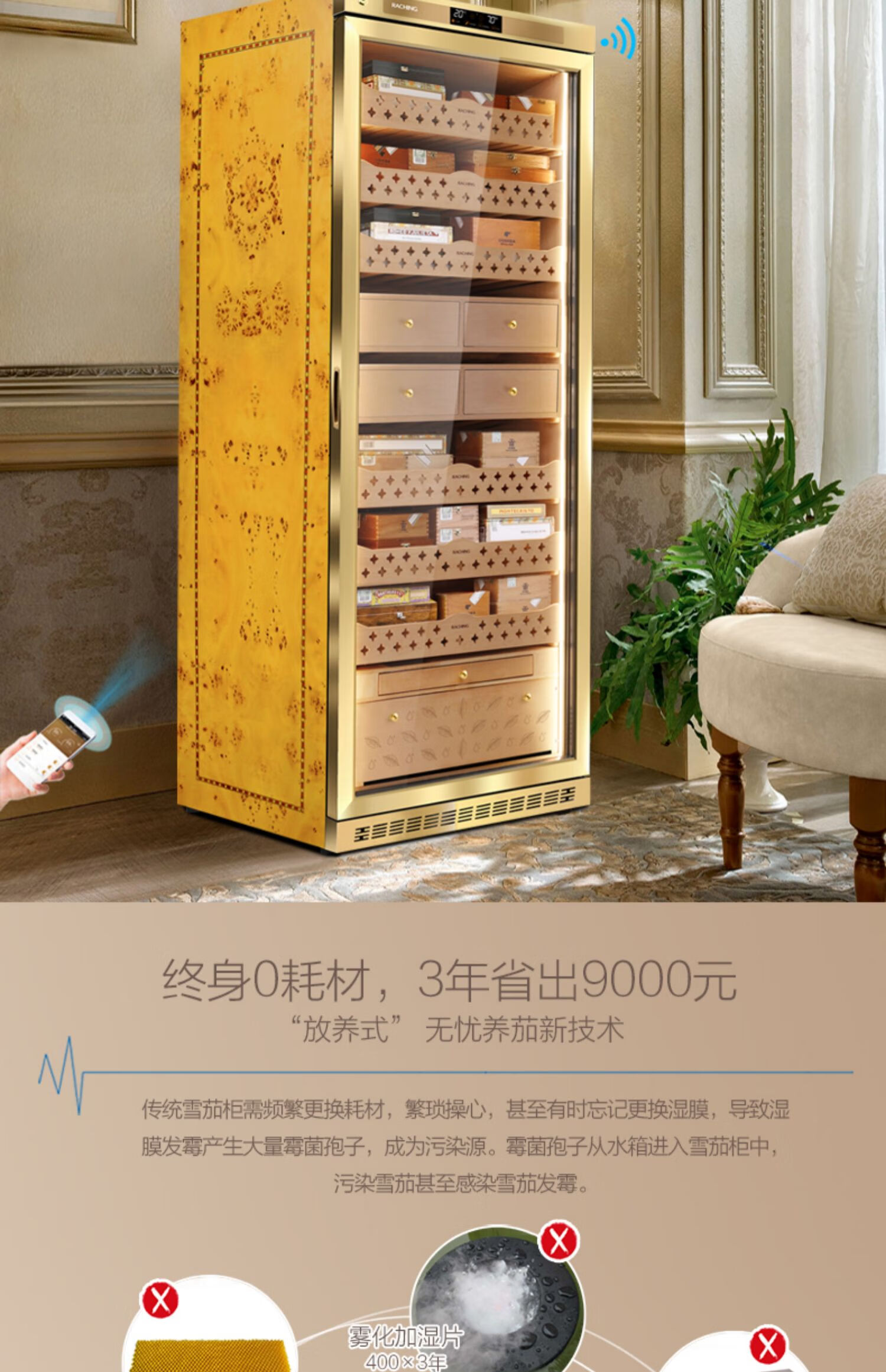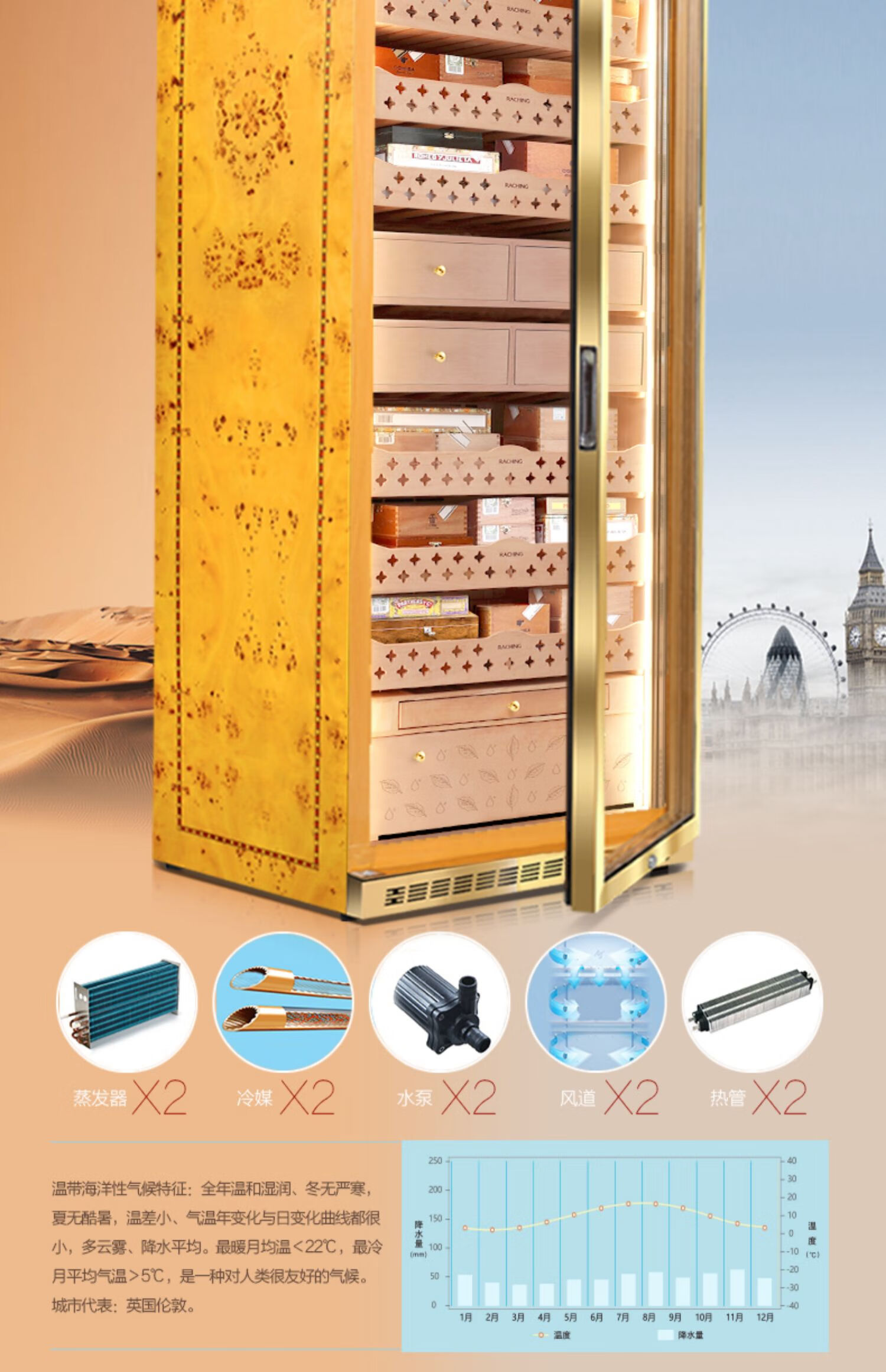 Meijing RACHING Meijing cigar cabinet MON5800A horizontal line series flagship model IMAX large capacity 580L intelligent water cooling and humidification technology constant temperature and humidity cigar humidifier upgraded ammonia purifier ~ starry sky black ~ Spanish shelf