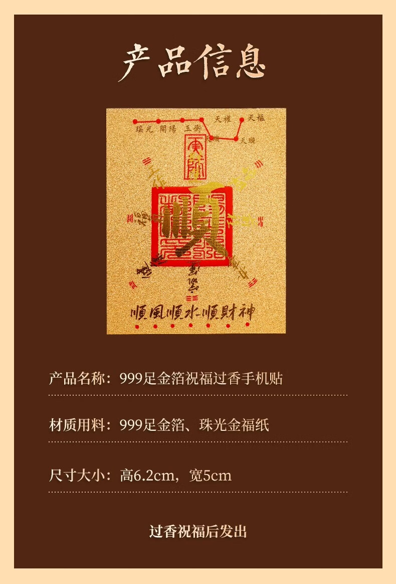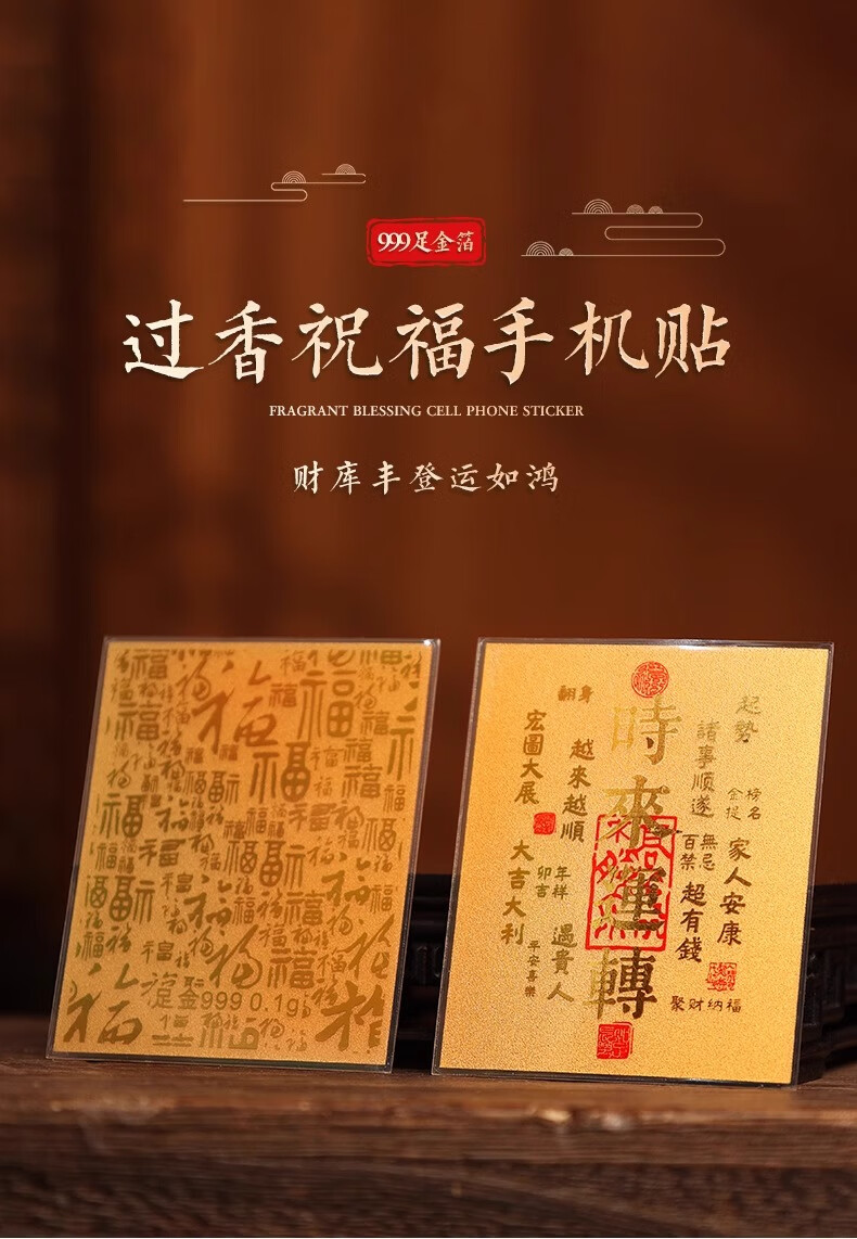 Putuo Mountain 2025 Pure Gold 999 Treasury Gold Mobile Phone Sticker for Wealth Replenishment, Wealth Recruitment and Protection Gold Sheet Stick Treasury-999 Pure Gold 2mg + Certificate