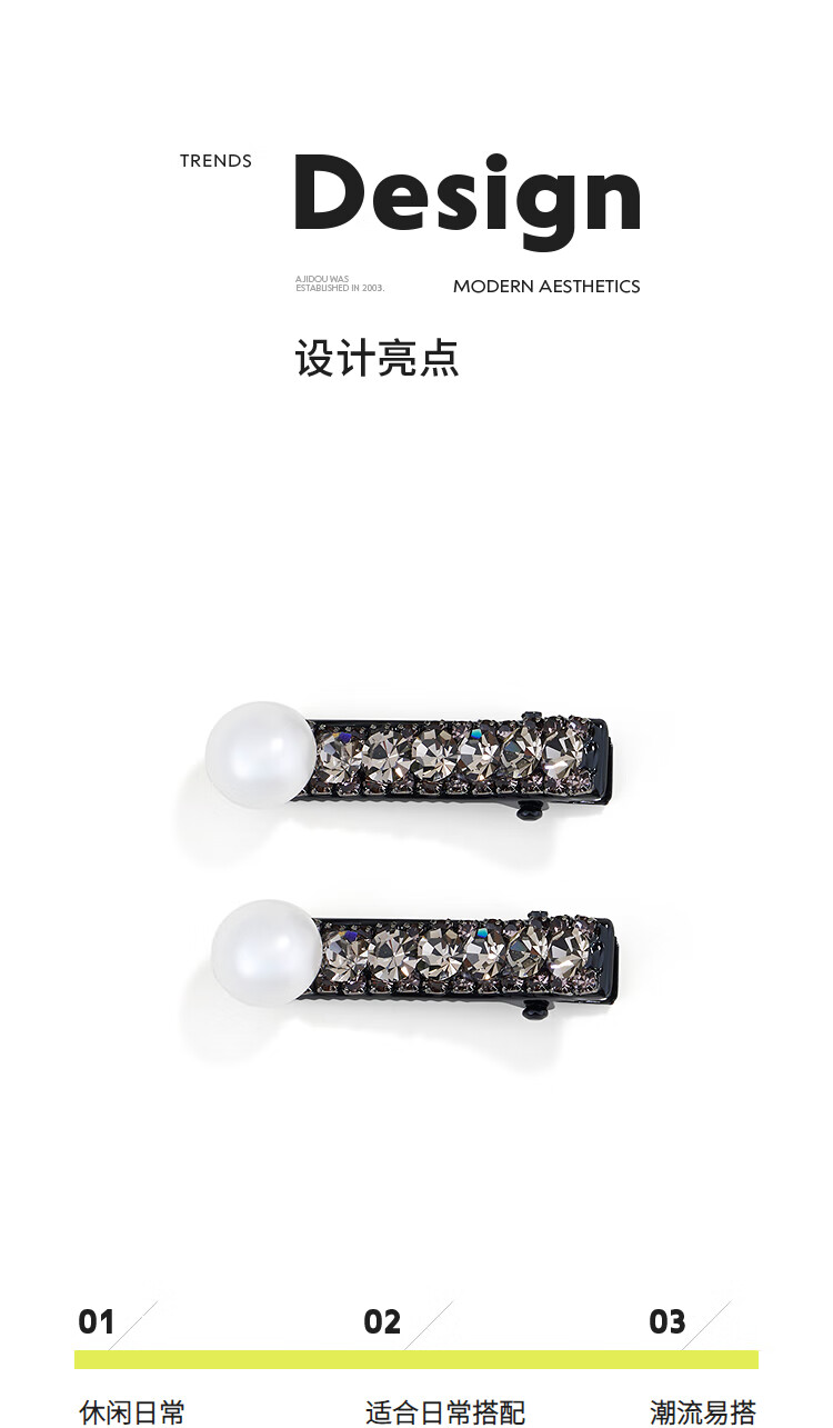 AJIDOU Ajidou Hair Clip Women's Exquisite and Cute Crystal Mini Small Clip Birthday Gift 2 Small Clips