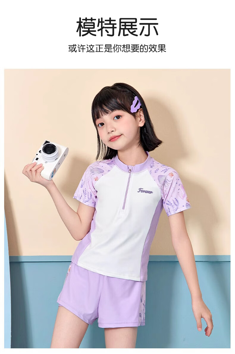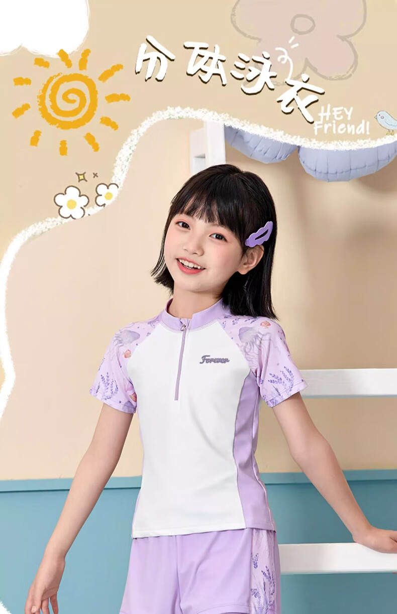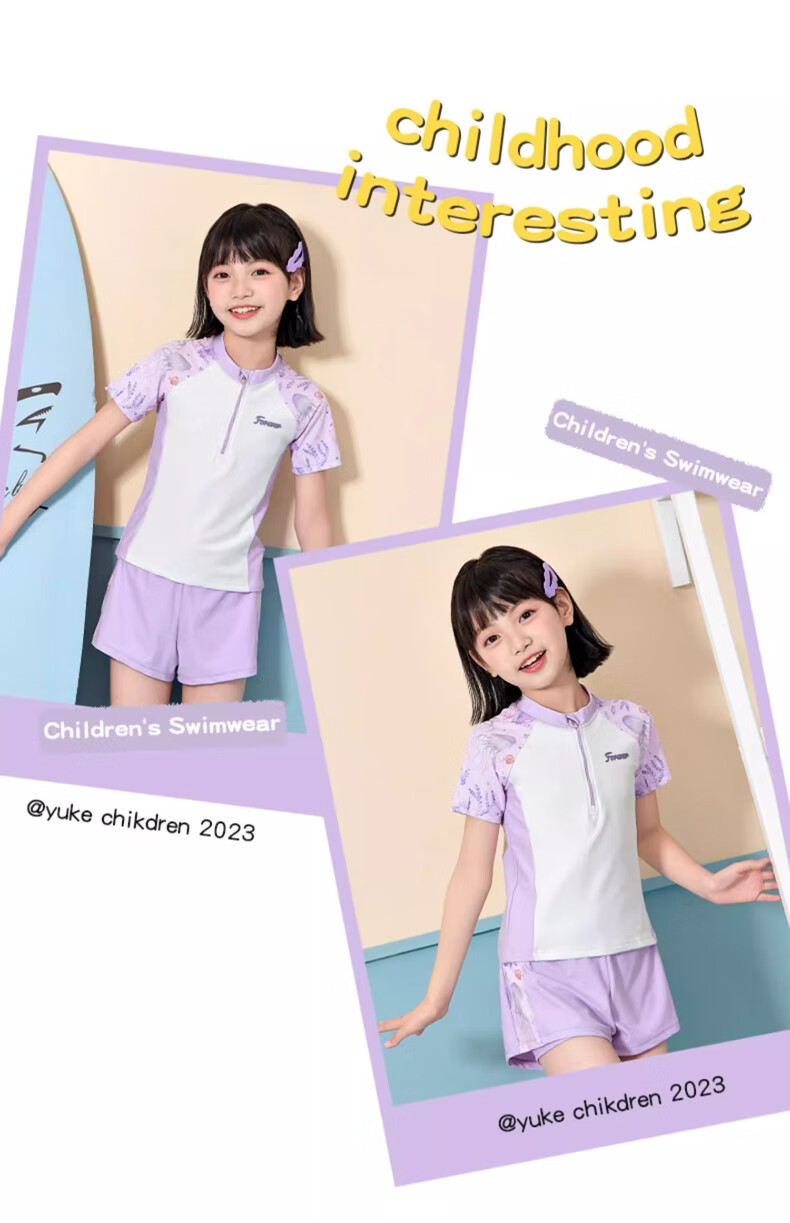 Yuke children's swimsuit girls split sun protection swimsuit 2025 new summer girls' professional training swimwear for middle and large children Lavender purple 130 /3XL recommended height 130 140CM