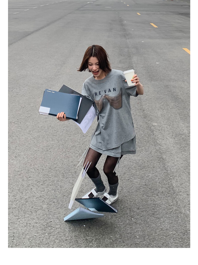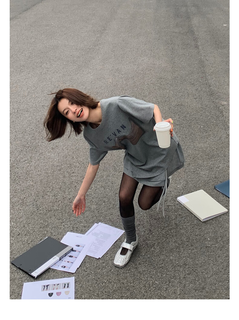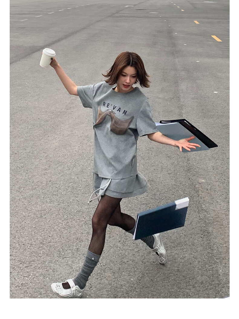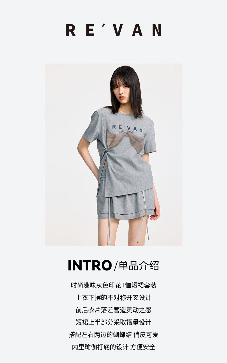 RE VAN Rui Fan New Product Designer Fun Gray T-shirt Skirt Suit RL32403201 Gray M /38