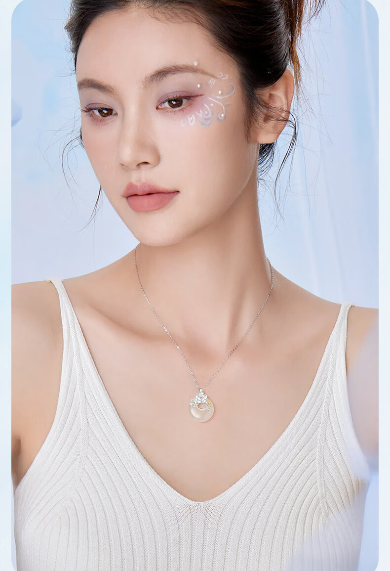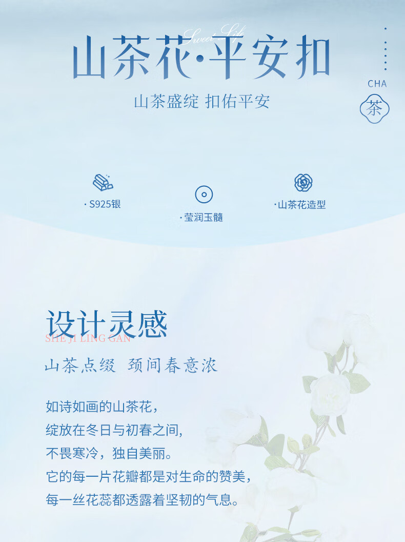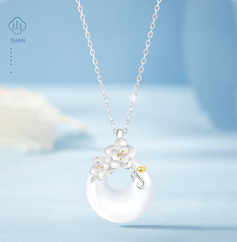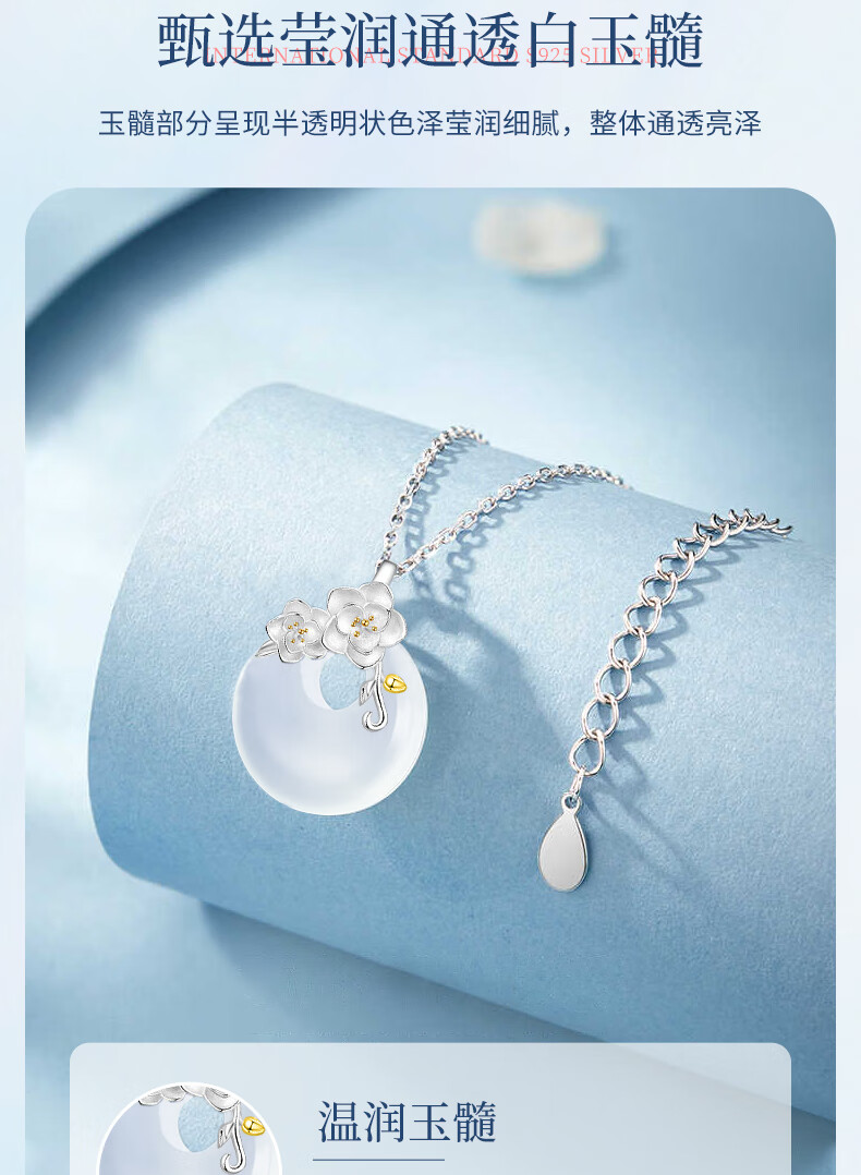 Chinese Gold Camellia Peace Buckle Pendant Silver Necklace Girls Jade Pendant New Year Christmas Birthday Gift for Girlfriend and Wife Jingsuda-Camellia Peace Buckle Chalcedony Necklace