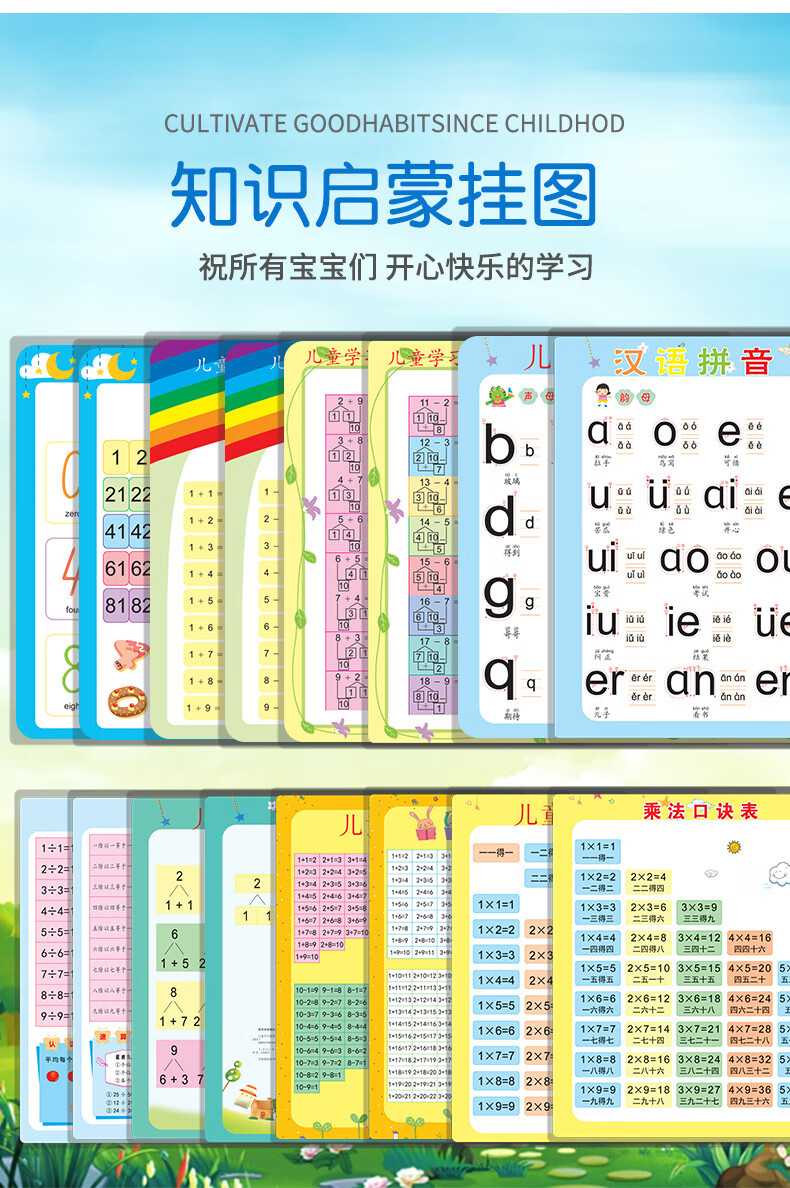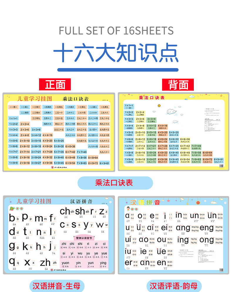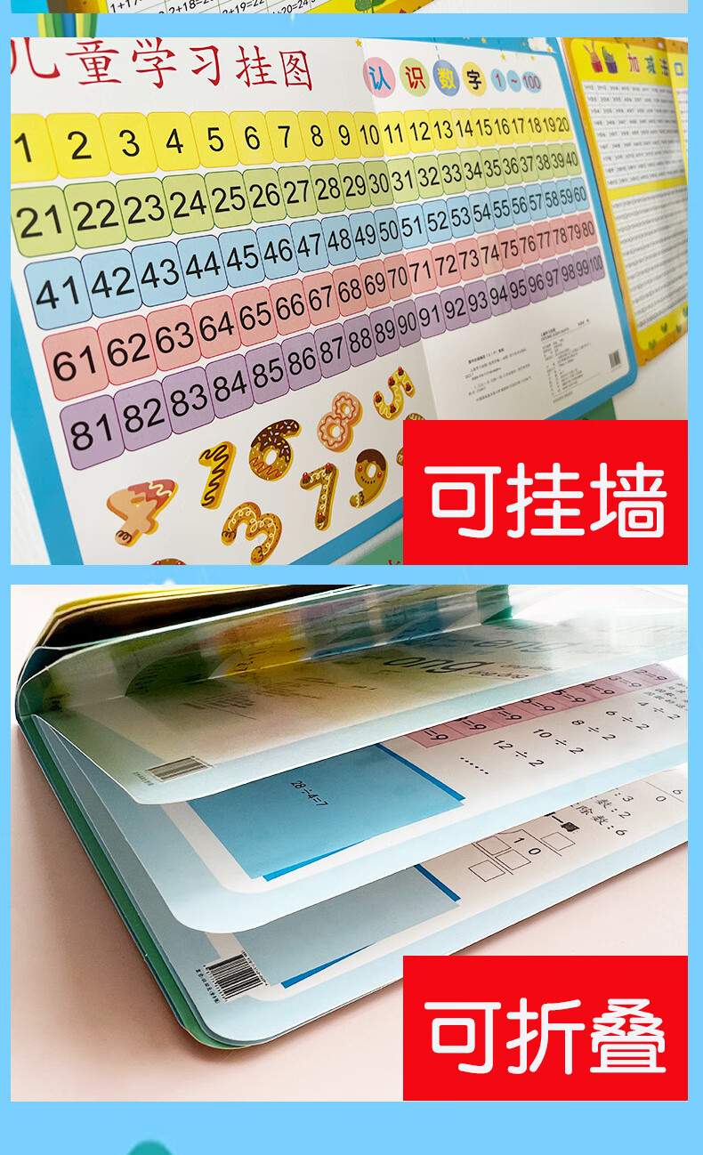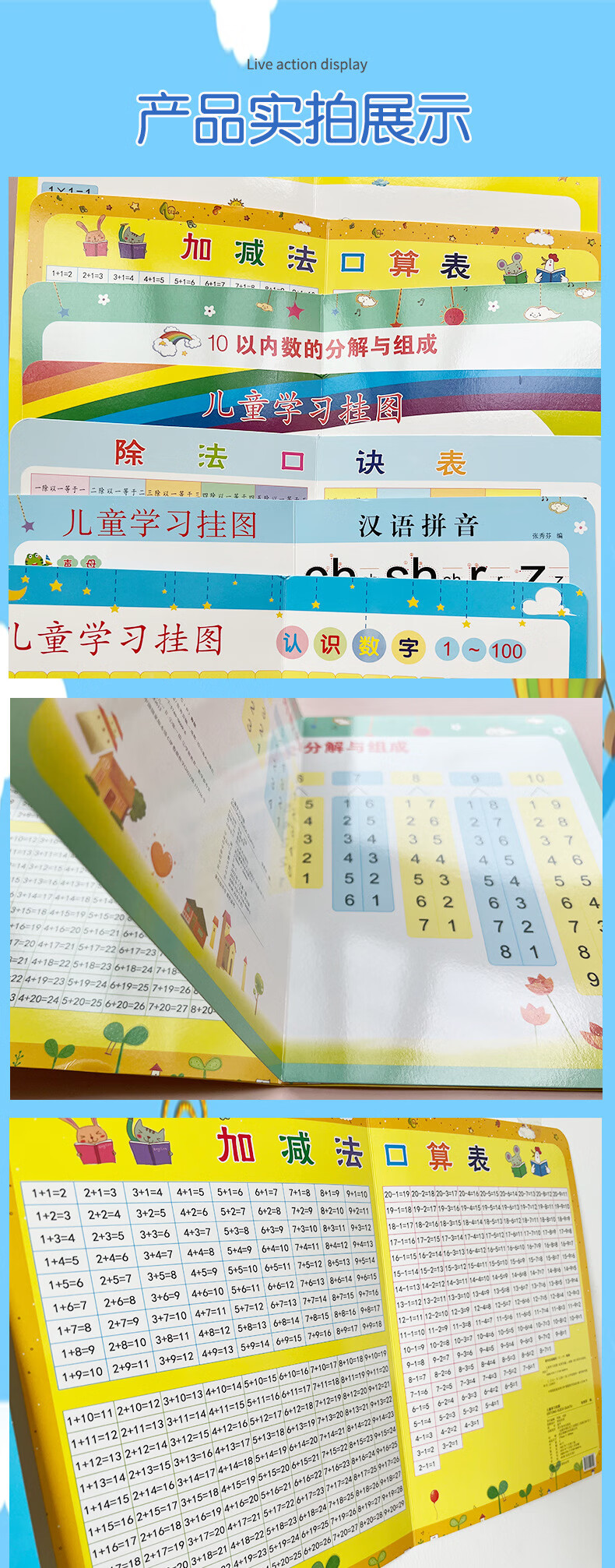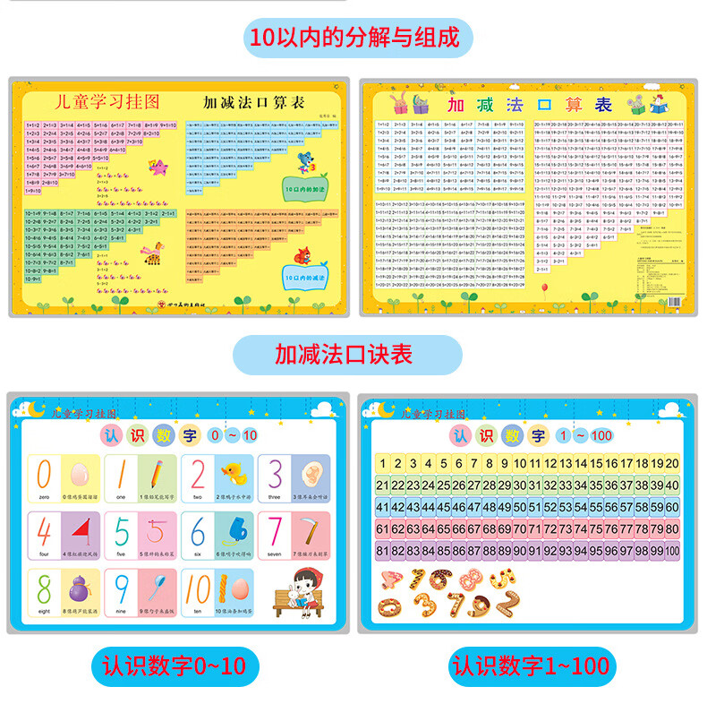 Thickened and unbreakable children's enlightenment wall chart Chinese pinyin multiplication and division borrowing ten methods to make ten addition and subtraction rhyme table children's knowledge enlightenment learning wall chart 3 pictures in total decomposition and composition within 10 + addition and subtraction + making up ten borrowing ten