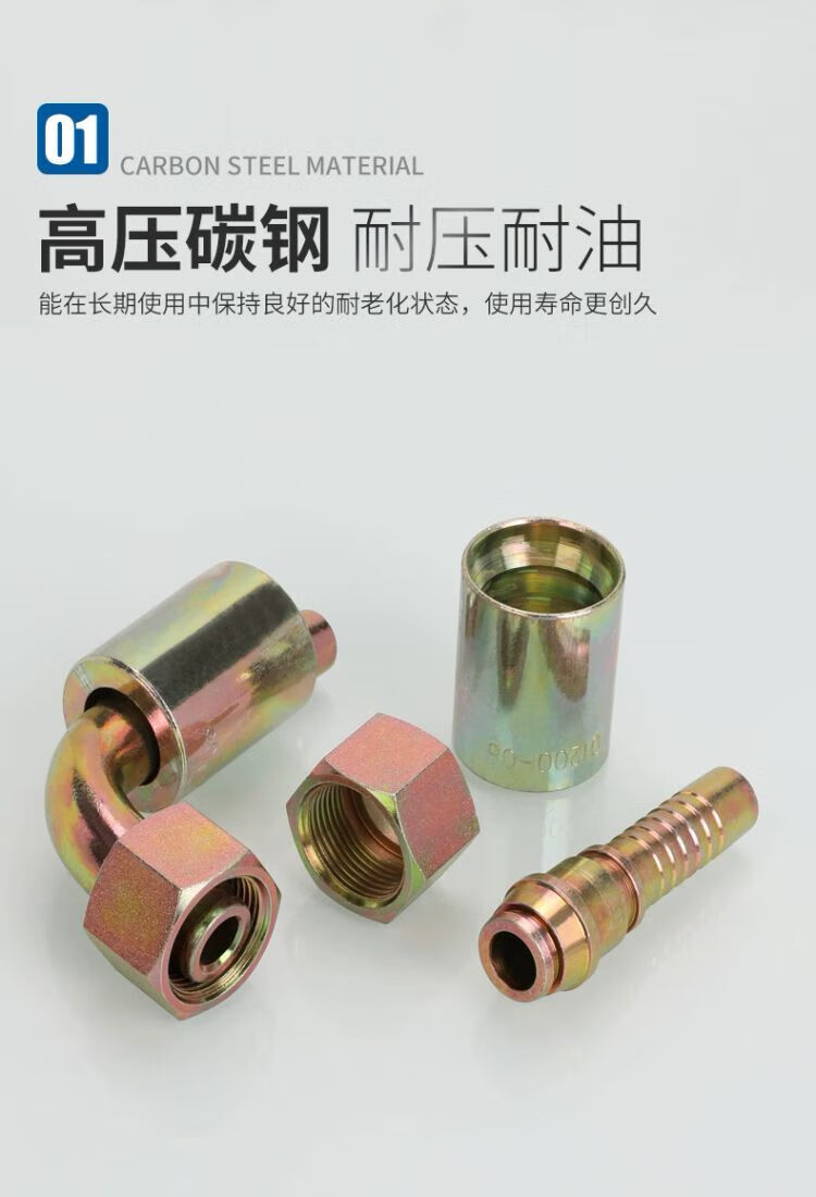 Withholding type hydraulic oil pipe high-pressure joint accessories hose three-piece set hose connection joint straight-through elbow tee 16-27*1.5H type straight-through