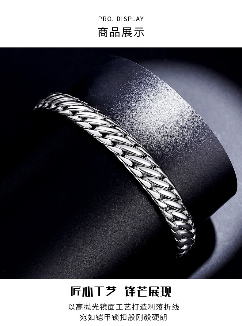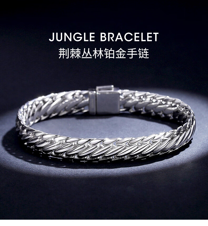 Aido Diamond Platinum Bracelet Men's pt950 Platinum Solid Three Horsewhips Show Domineering Thick Bracelet, Ready Stock, Weight 77.40g, Length 20cm, Thickness About 9.5mm