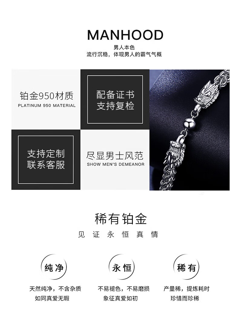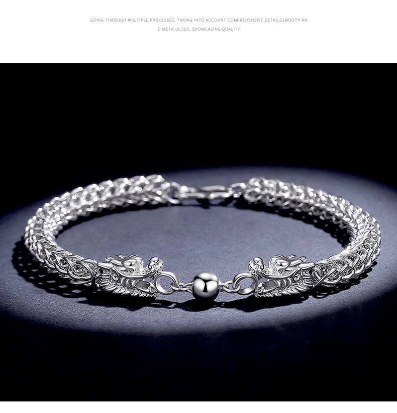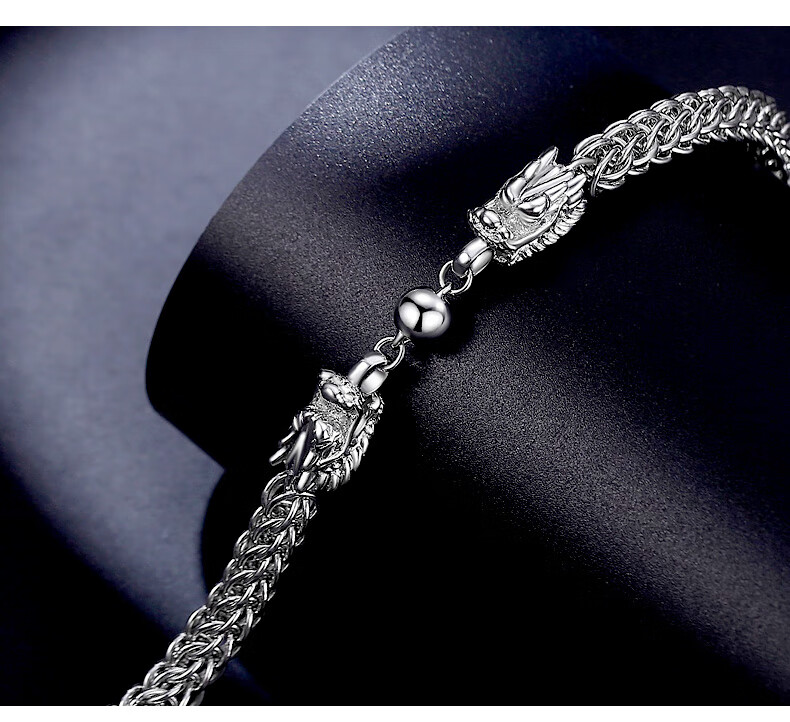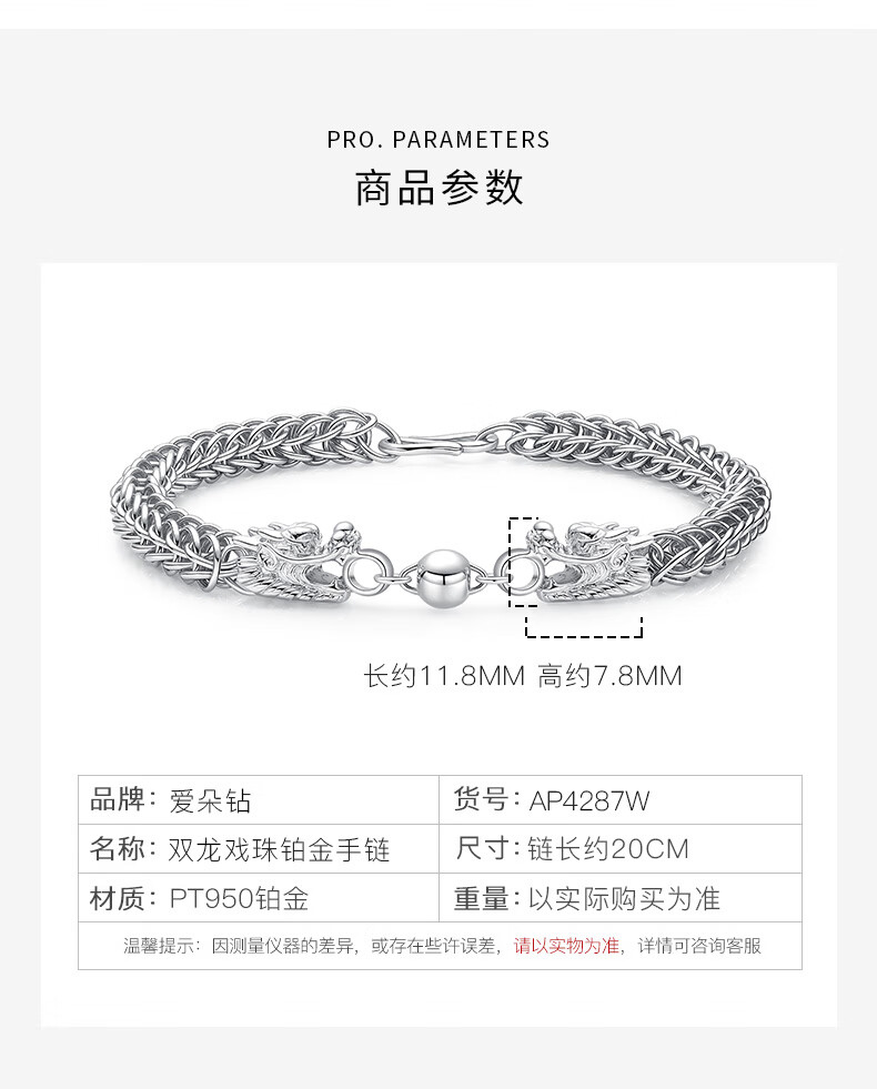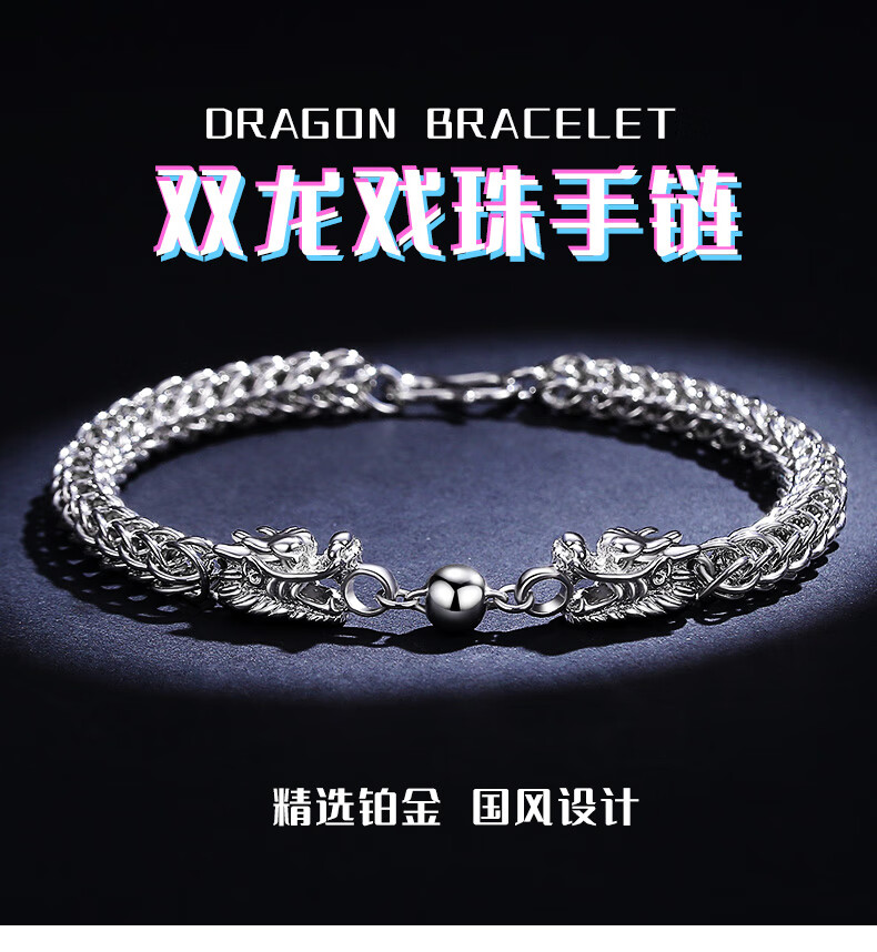 Aido Diamond pt950 Platinum Double Dragon Head Bracelet Men's Platinum Double Dragon Playing Pearl Dragon Bone Bracelet All Specifications are based on the actual weight and the amount will be refunded if the amount is less.