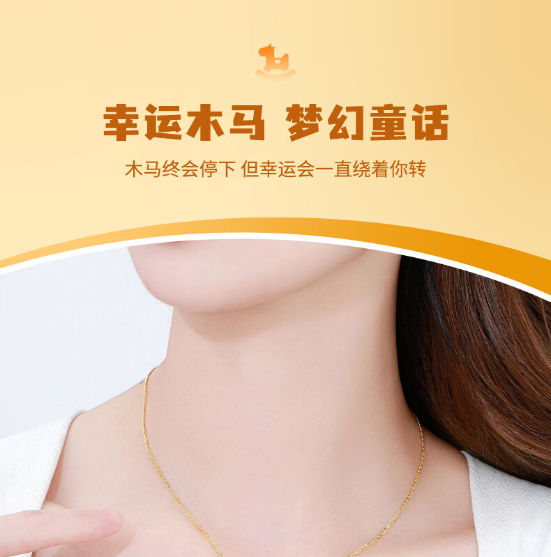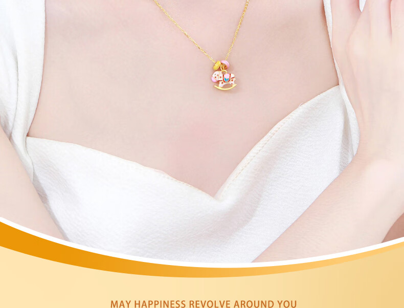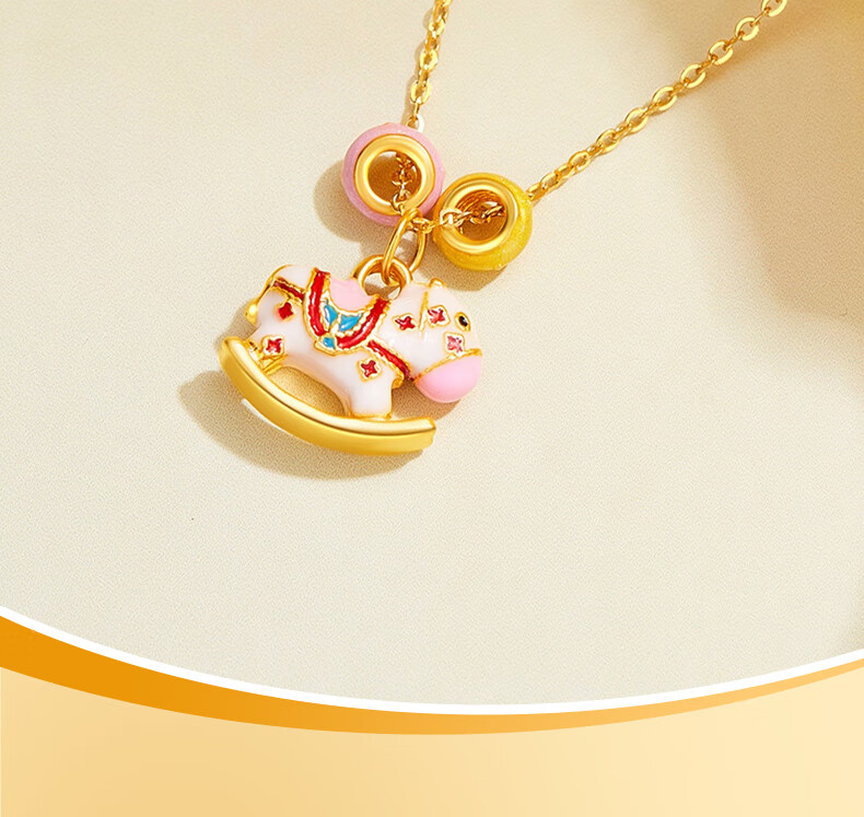 Chinese gold zodiac year, year of the horse, gold necklace for women, carousel horse, solid gold pendant, birthday gift for wife, wedding anniversary, solid gold rocking horse donut pendant, free silver chain, Jingsuda