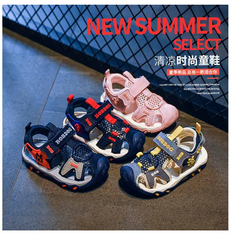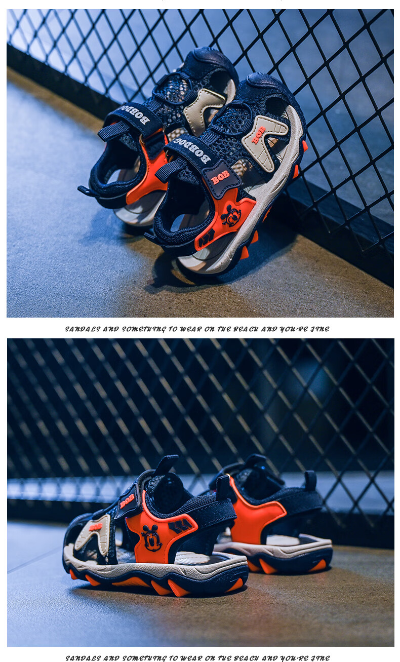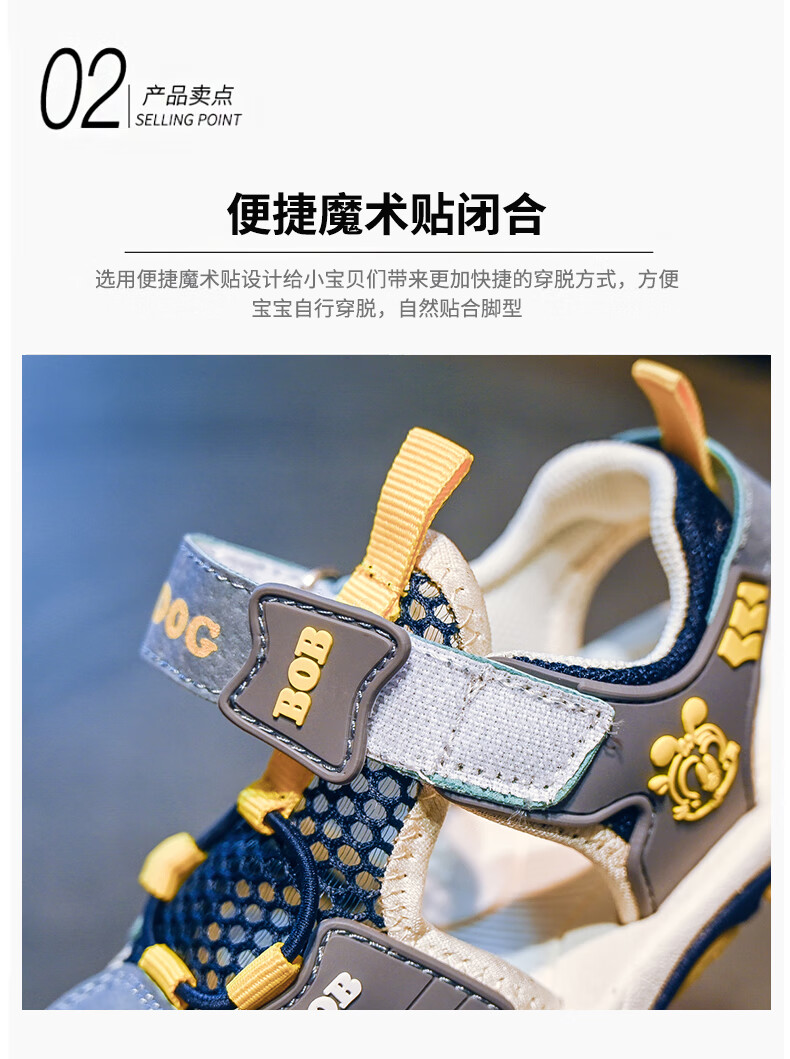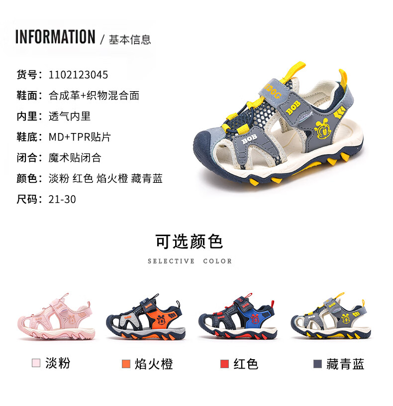 BOBDOG children's shoes baby functional sandals 2025 new summer children's non-slip soft sole toe toddler shoes summer boys' shoes Azure/Navy Blue 1102123045 24 Shoe inner length 150mm