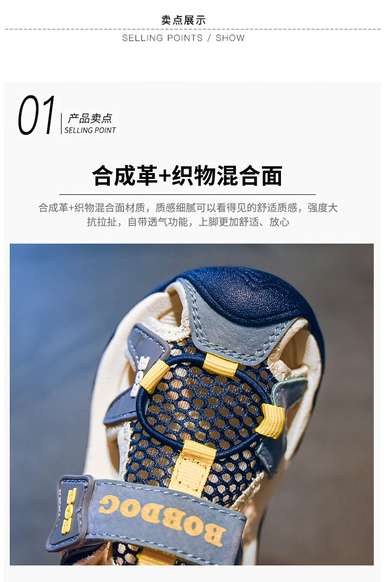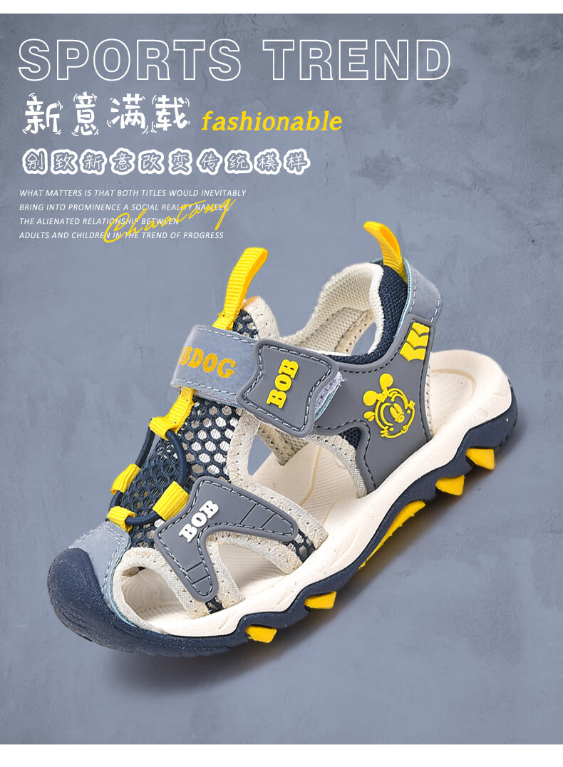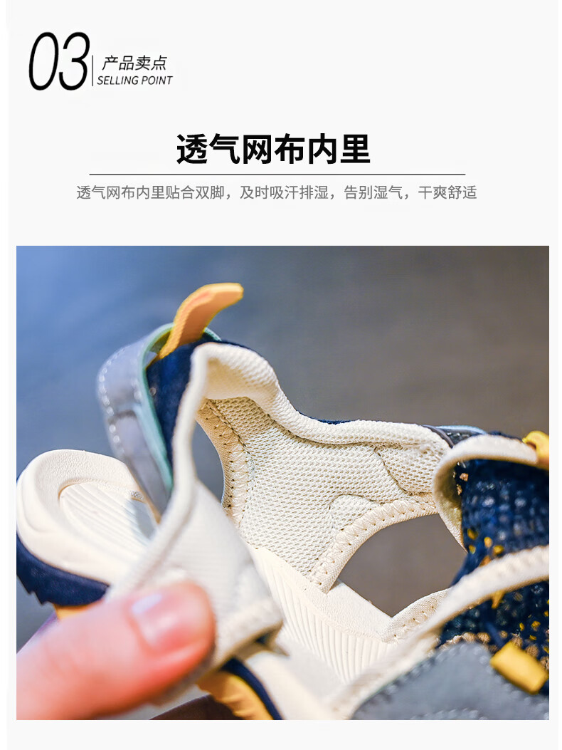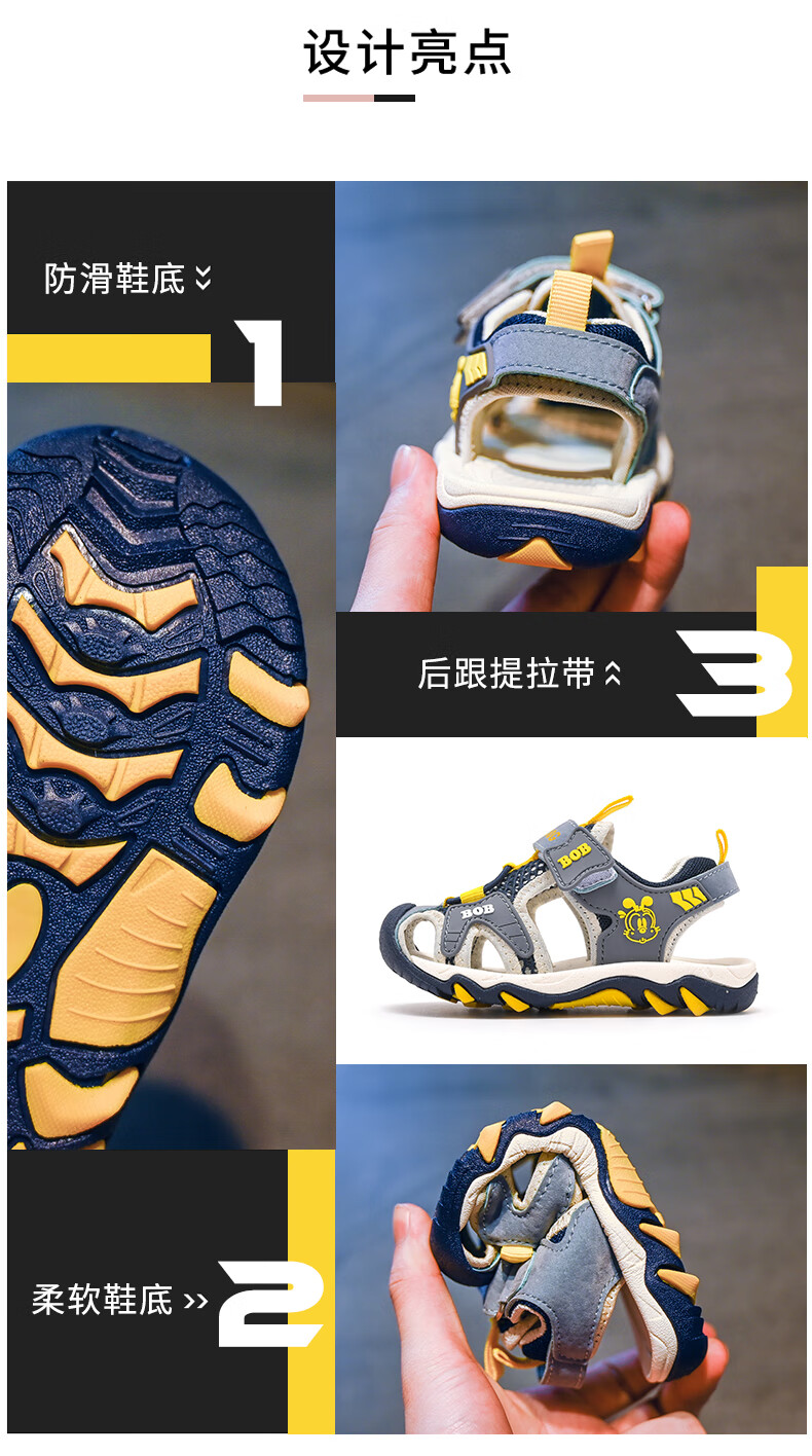 BOBDOG children's shoes baby functional sandals 2025 new summer children's non-slip soft sole toe toddler shoes summer boys' shoes Azure/Navy Blue 1102123045 24 Shoe inner length 150mm