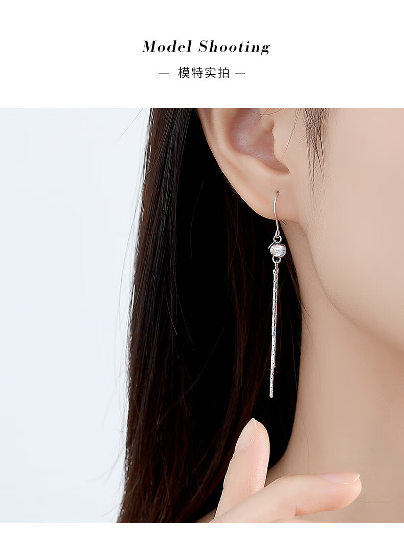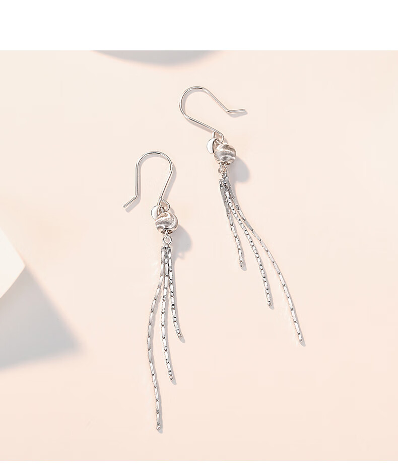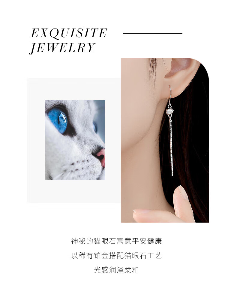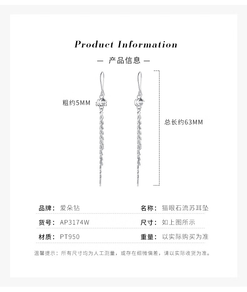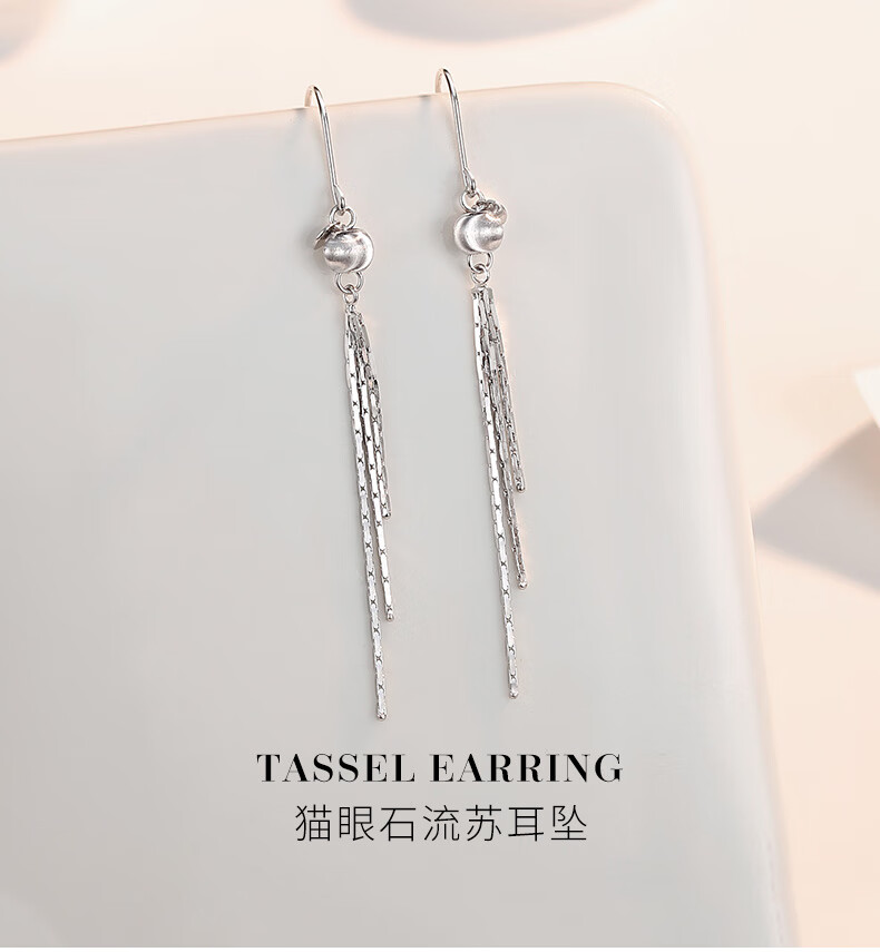 Aido Diamond Platinum Tassel Earrings Women's Fashion pt950 Platinum Cat's Eye Ball Ear Hook Versatile Earrings Pair 2.9-3.1g