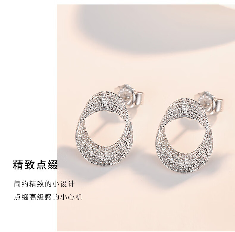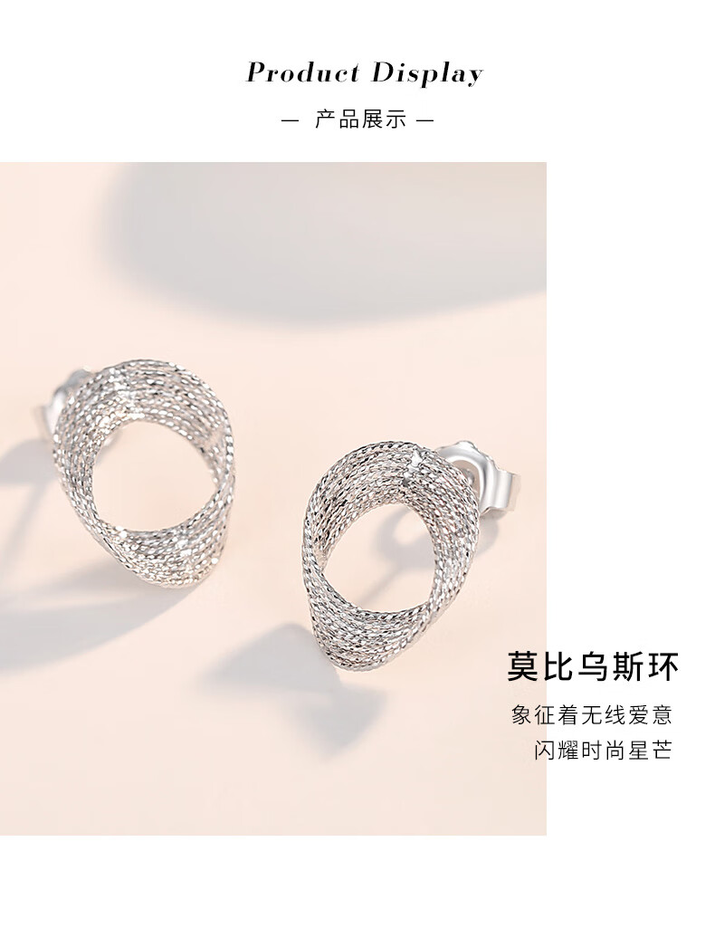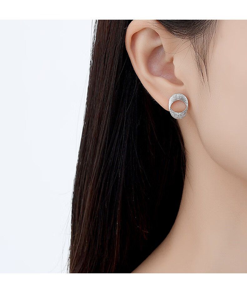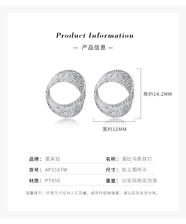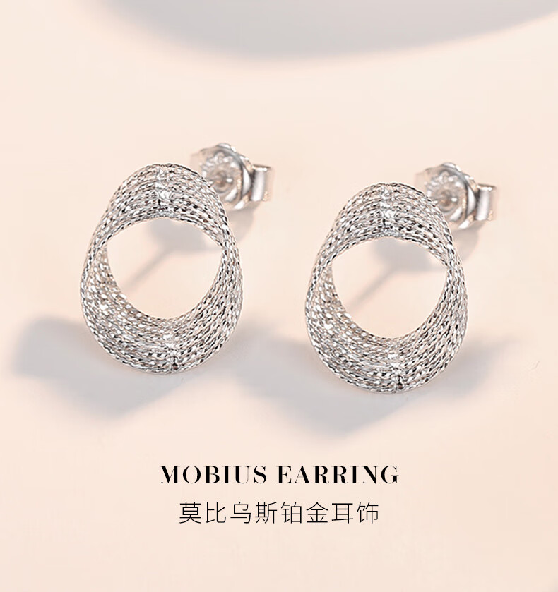 Aido diamond pt950 platinum Möbius ring earrings, fashionable platinum hoop earrings, versatile earrings, one pair, 2.6-2.8g