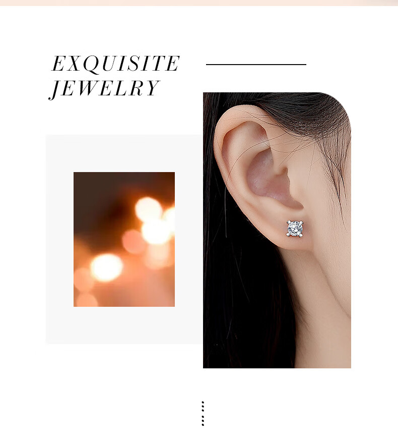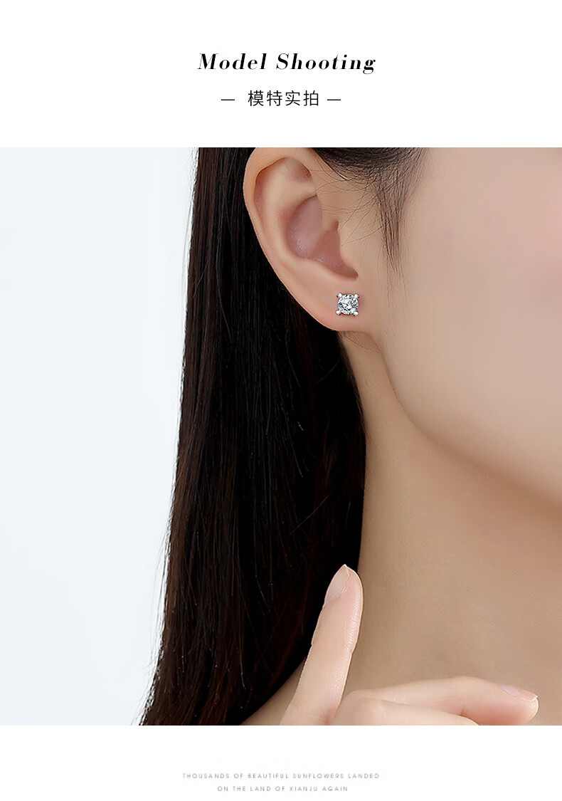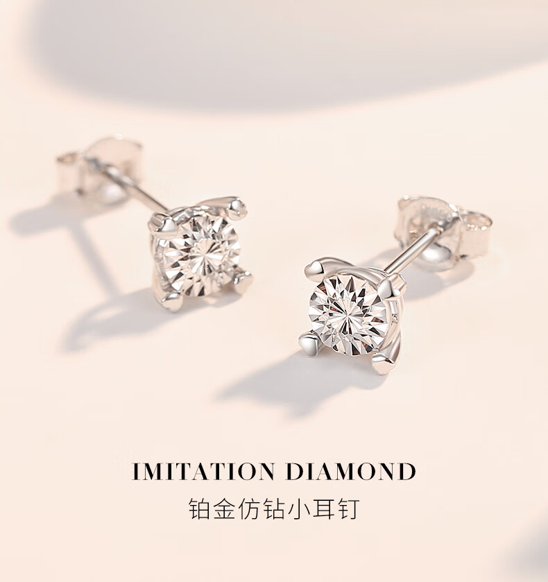 Aido Diamond pt950 platinum imitation diamond earrings, fashionable boutique platinum earrings, small earrings, versatile earrings, one pair, 2.6-2.8g