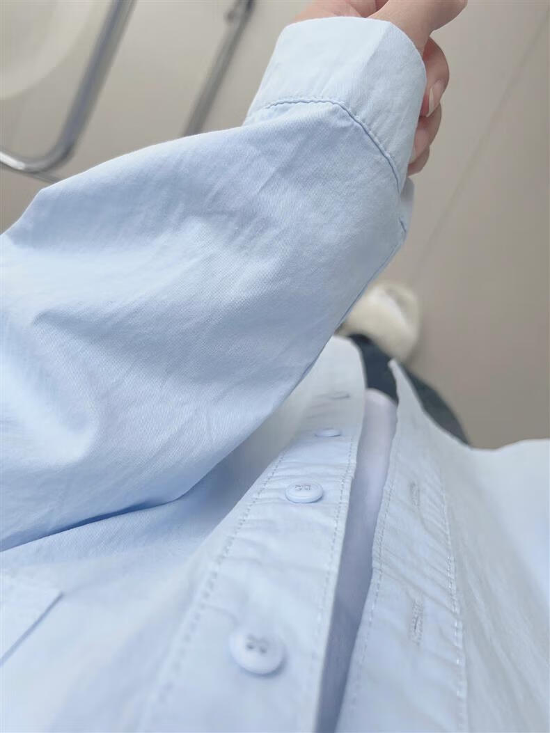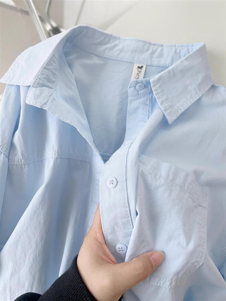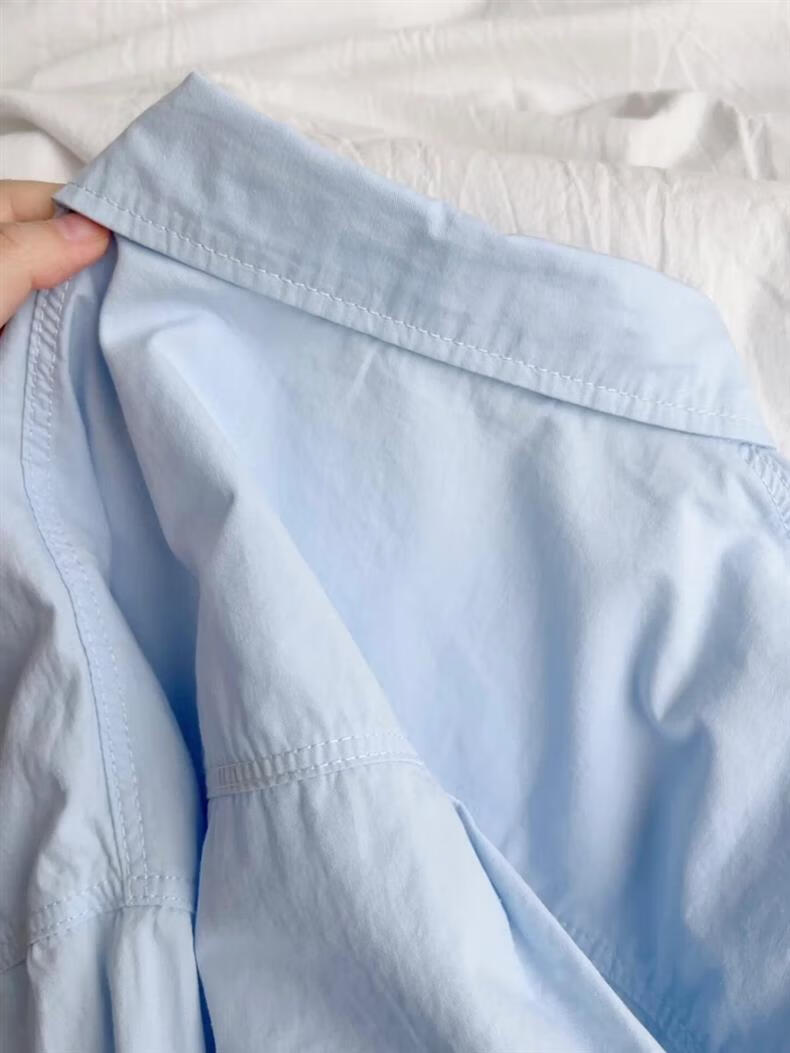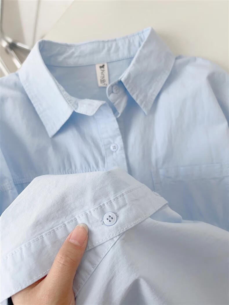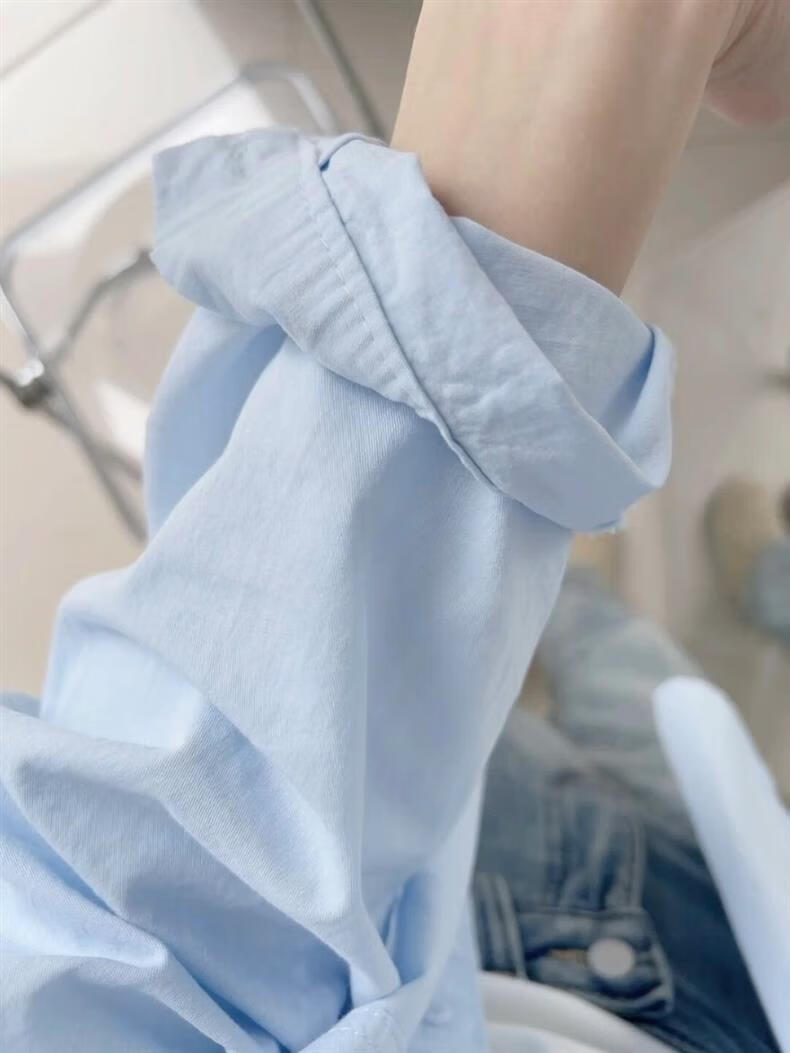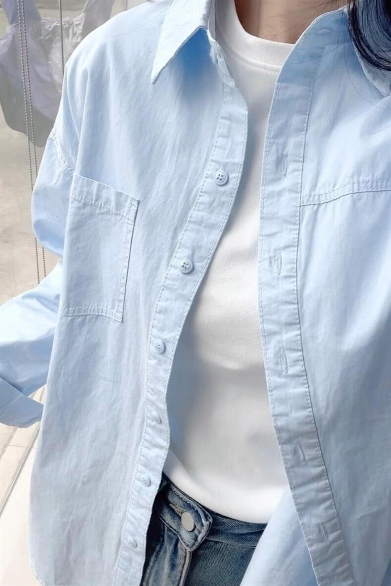 Versatile 2026 Autumn New White Light Blue Cotton Shirt Women's Top Long Sleeve Loose Slim Shirt Light Blue (No Pockets 100% Cotton High Quality Surface S Recommended 80-100 Jin Jin equals 0.5 kg to wear