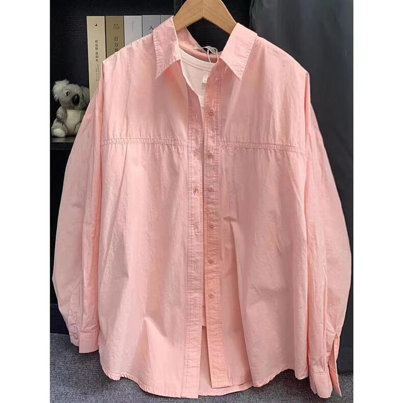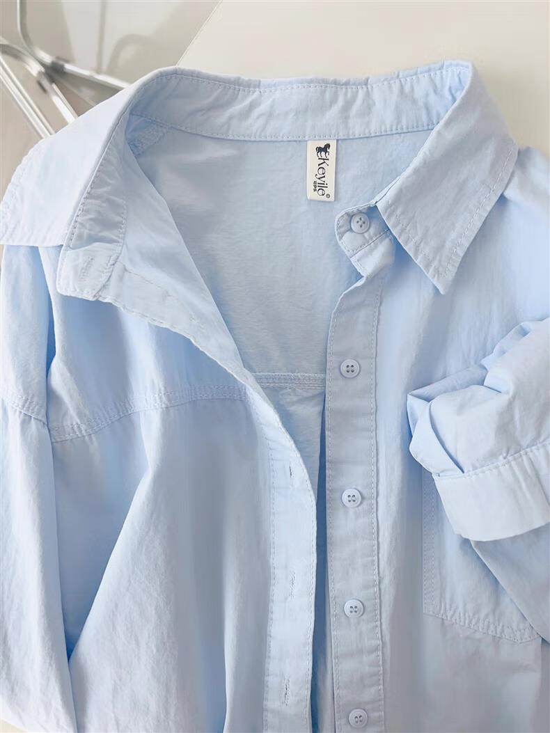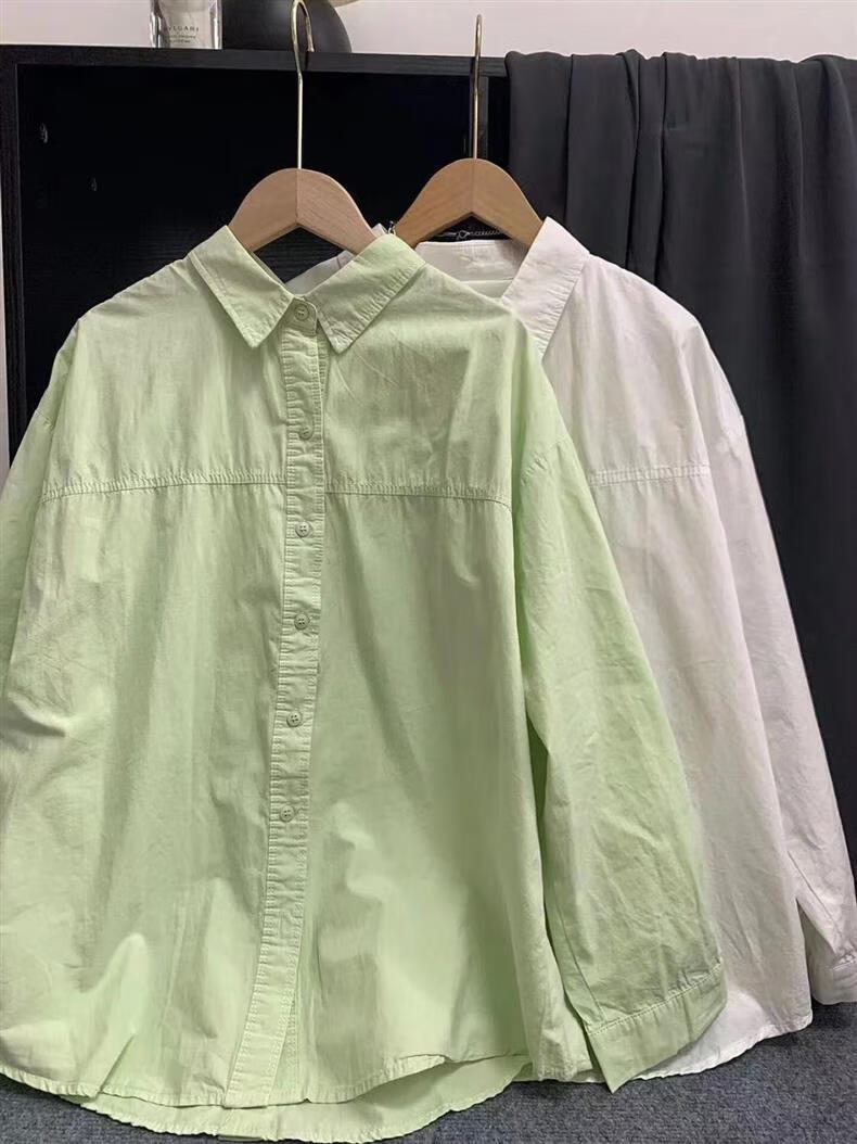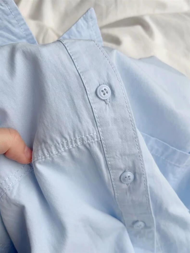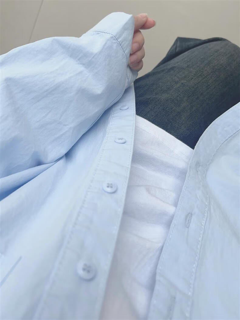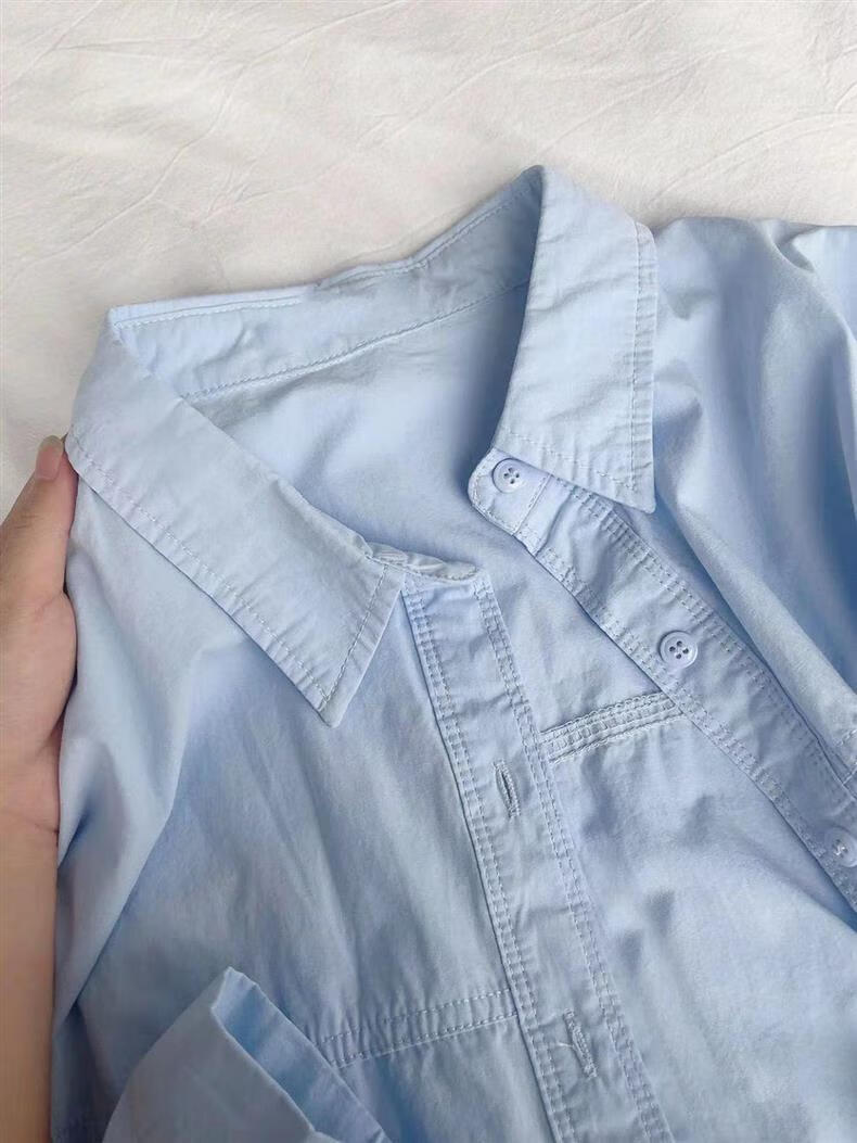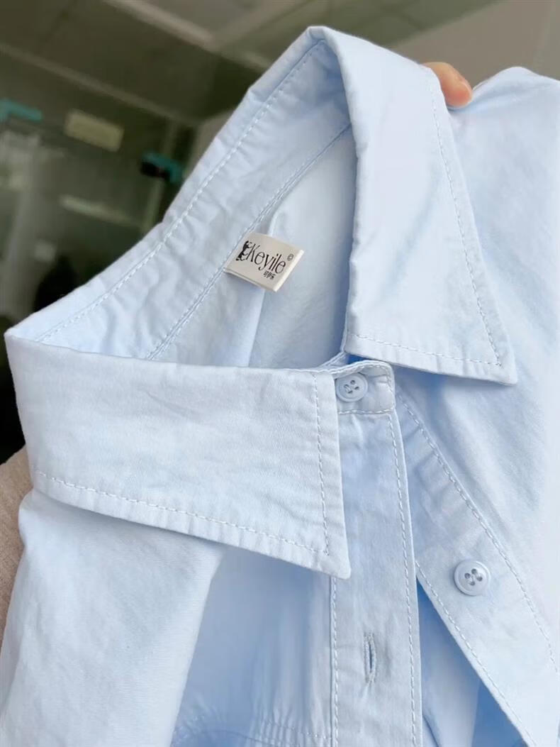 Versatile 2026 Autumn New White Light Blue Cotton Shirt Women's Top Long Sleeve Loose Slim Shirt Light Blue (No Pockets 100% Cotton High Quality Surface S Recommended 80-100 Jin Jin equals 0.5 kg to wear