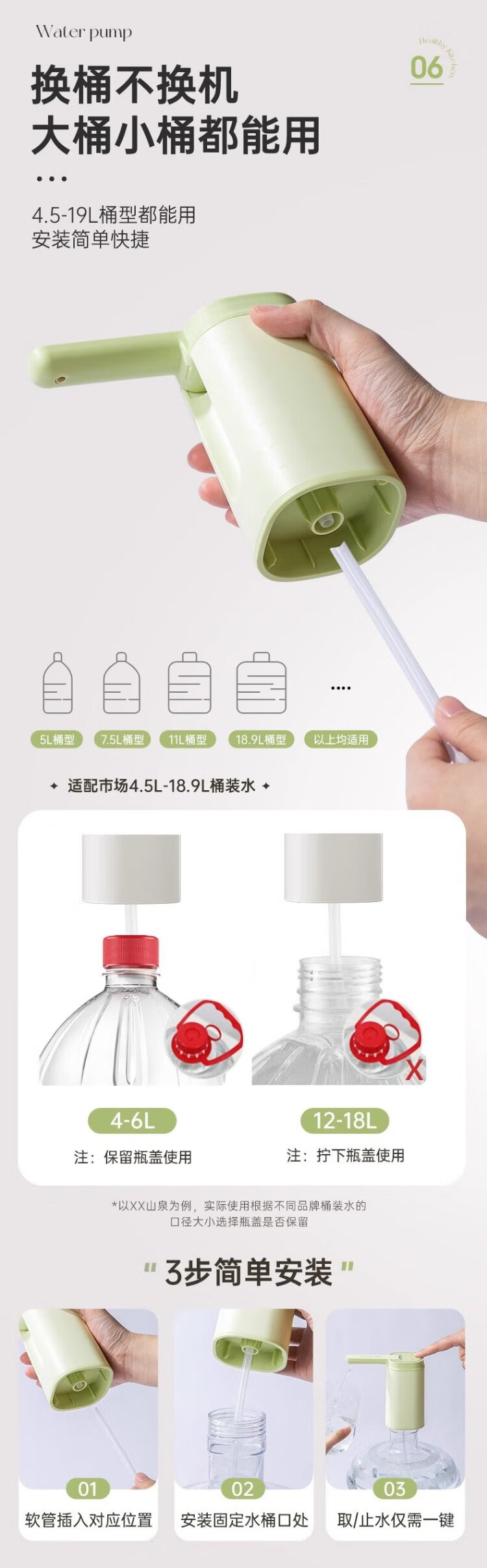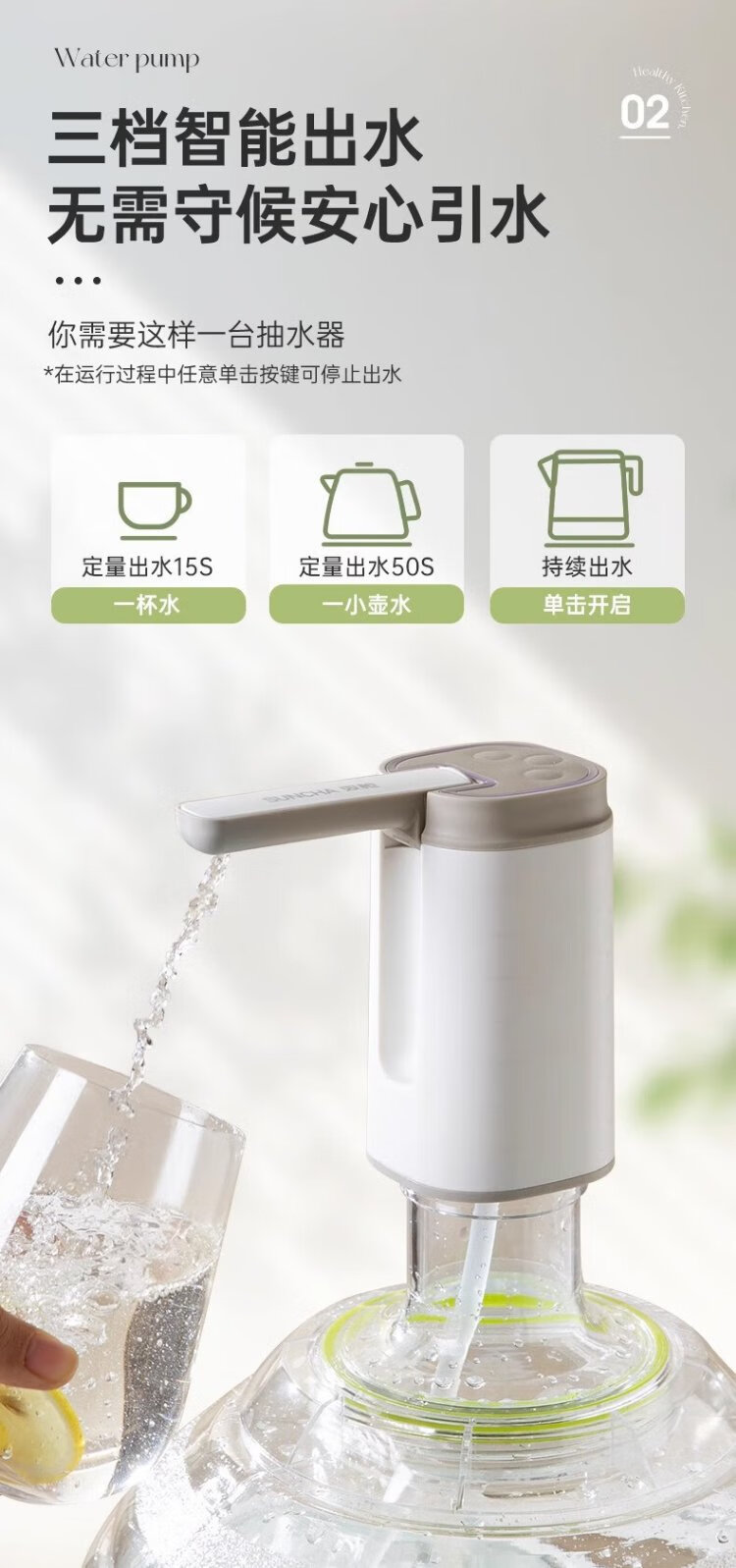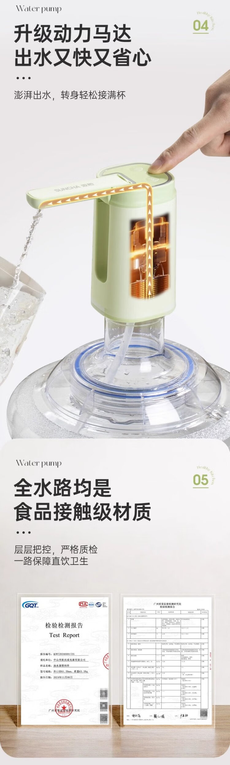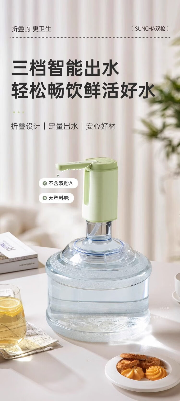 Double gun water pump, electric barreled water, fully automatic water press, water dispenser, water dispenser, water suction device, household water pump 25 new models, single button, matcha green