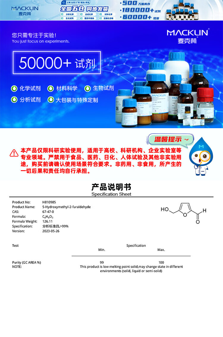Macklin 5-hydroxymethylfurfural CAS 67-47-0 H810985-250mg