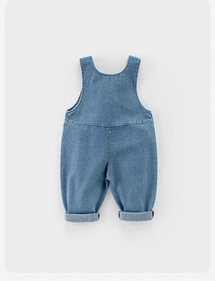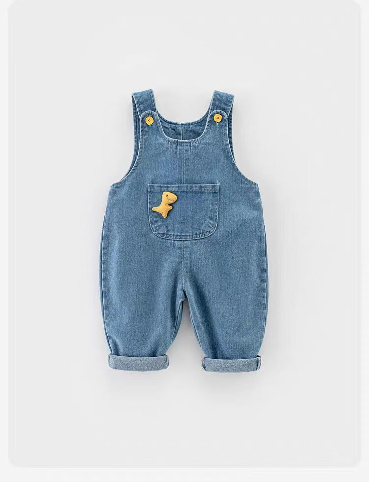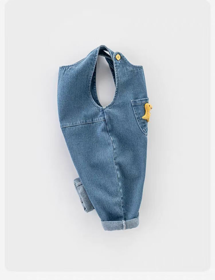 G.DUCKKIDS little yellow duck children's pants spring and autumn new baby denim overalls for small and medium-sized boys and girls loose and versatile blue cartoon dinosaur 100