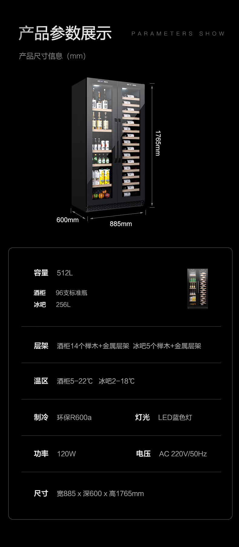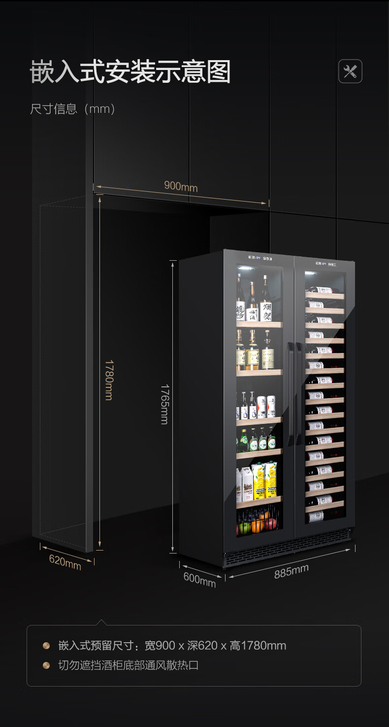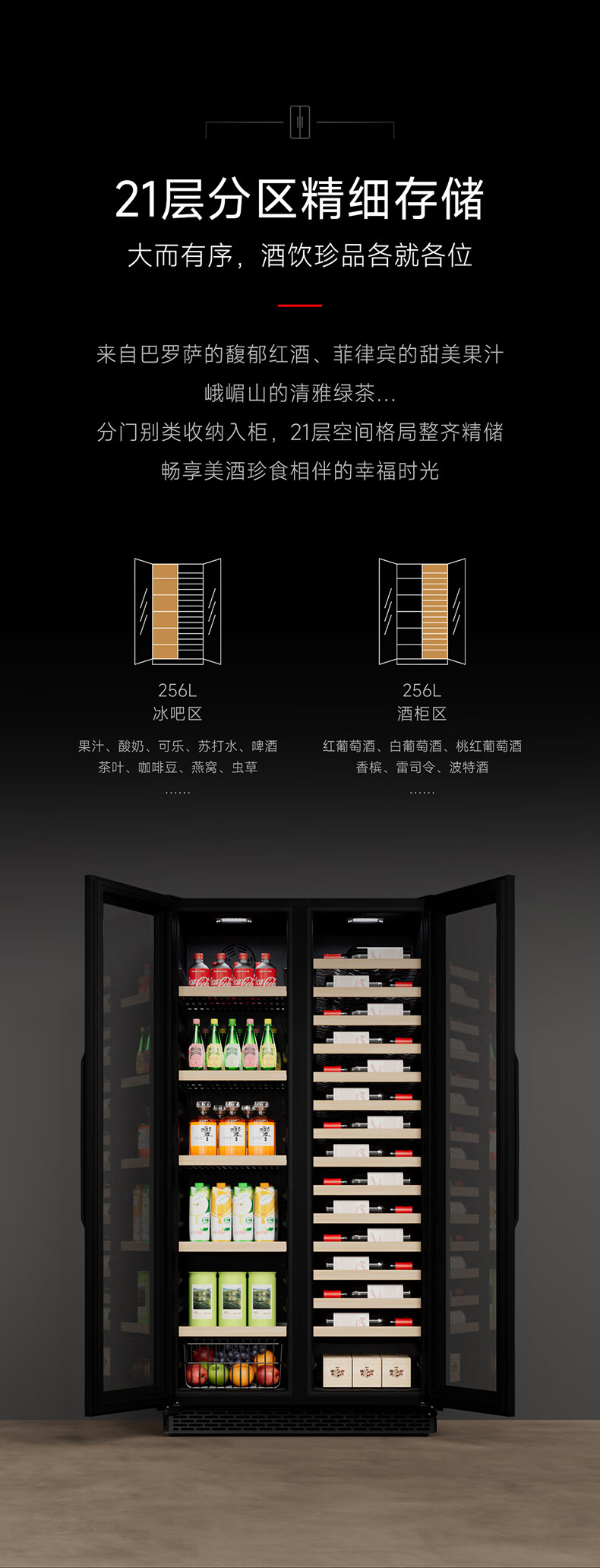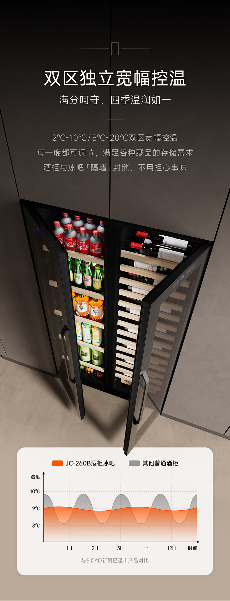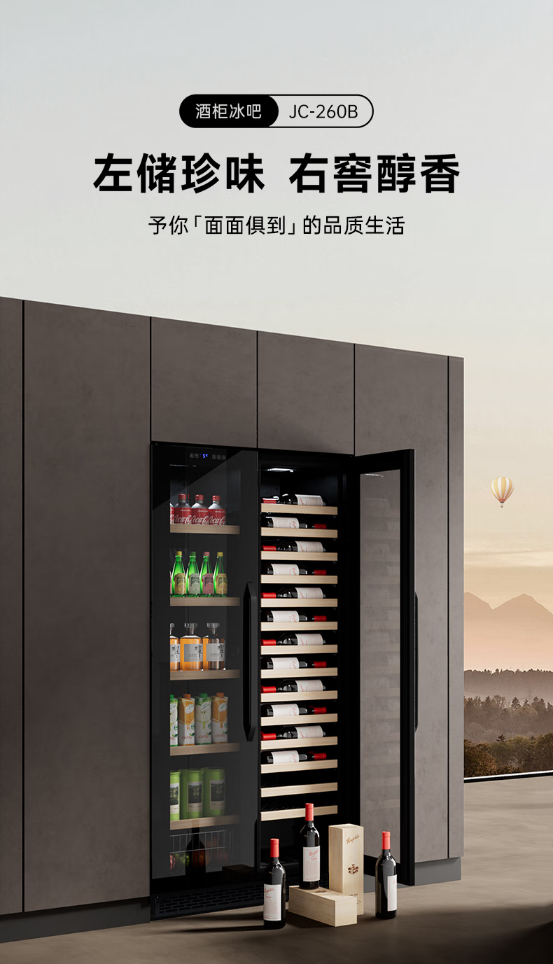 Xinchao (SICAO) recommended wine cabinet, constant temperature wine cabinet, double-door, home wine cabinet, ice bar, air-cooled, embeddable fruit beverage refrigeration, fresh-keeping wine cabinet, refrigerator JC-260 JC-260 wine cabinet + ice bar