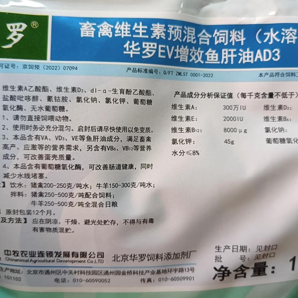 OIMG livestock and poultry vitamin premixed feed (water-soluble) Hualuo EV synergistic AD3 for livestock, poultry, cattle and sheep 1 kg per pack