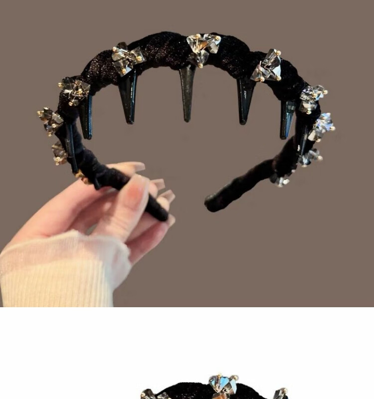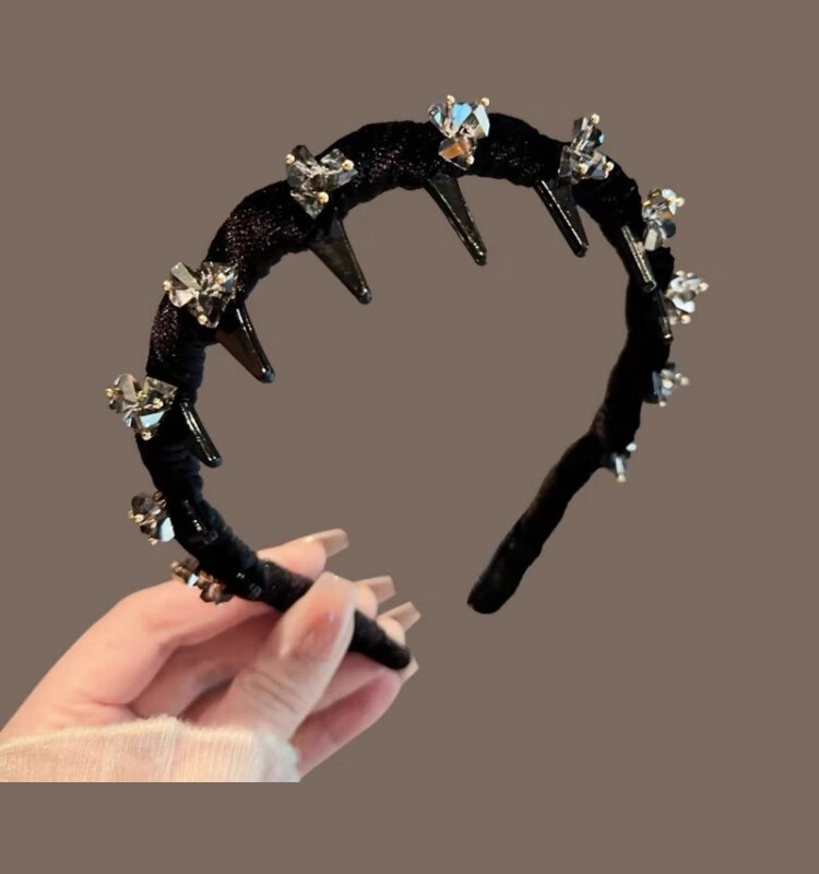Japanese and Korean temperament velvet rhinestone wavy hairband with teeth and anti-slip new style 2025 autumn and winter broken hair face wash headband hair accessories black - velvet rhinestone black long hair 1cm