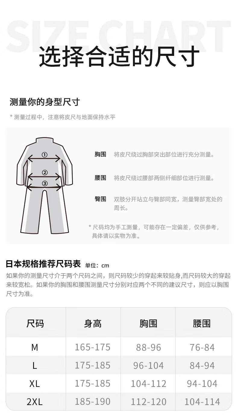 China (cm) 165 / 88-90 170 / 96-98 175 / 108-110 180 / 118-122 185 / 126-130