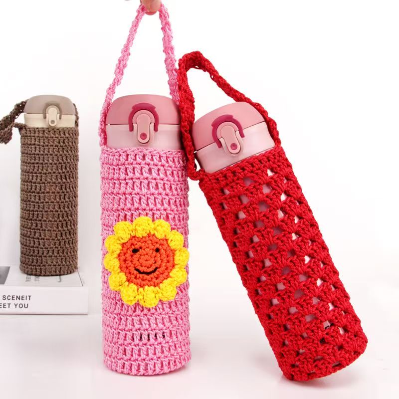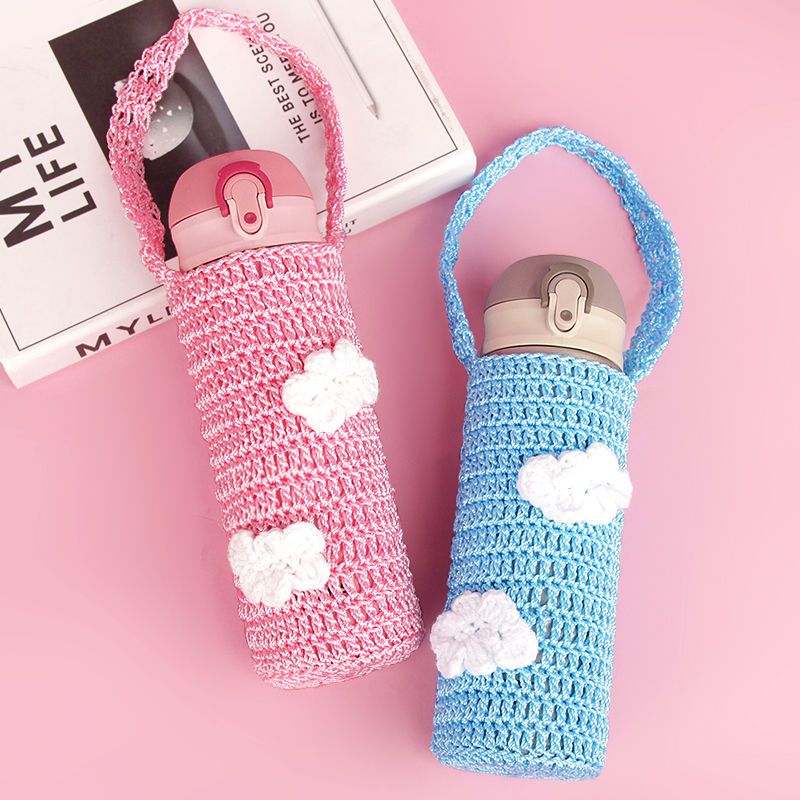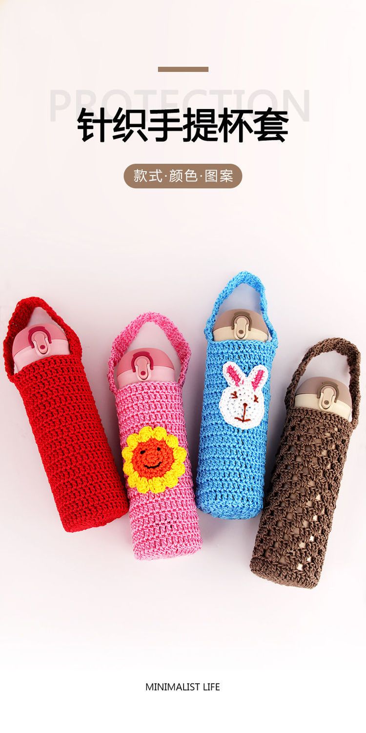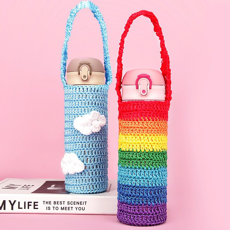 JD Logistics Thermos Cup Cover Knitted Portable Water Cup Protective Cover Glass Cute Cute Anti-fall Water Cup Cover Closely Woven Splicing Style - Colorful Rainbow Medium