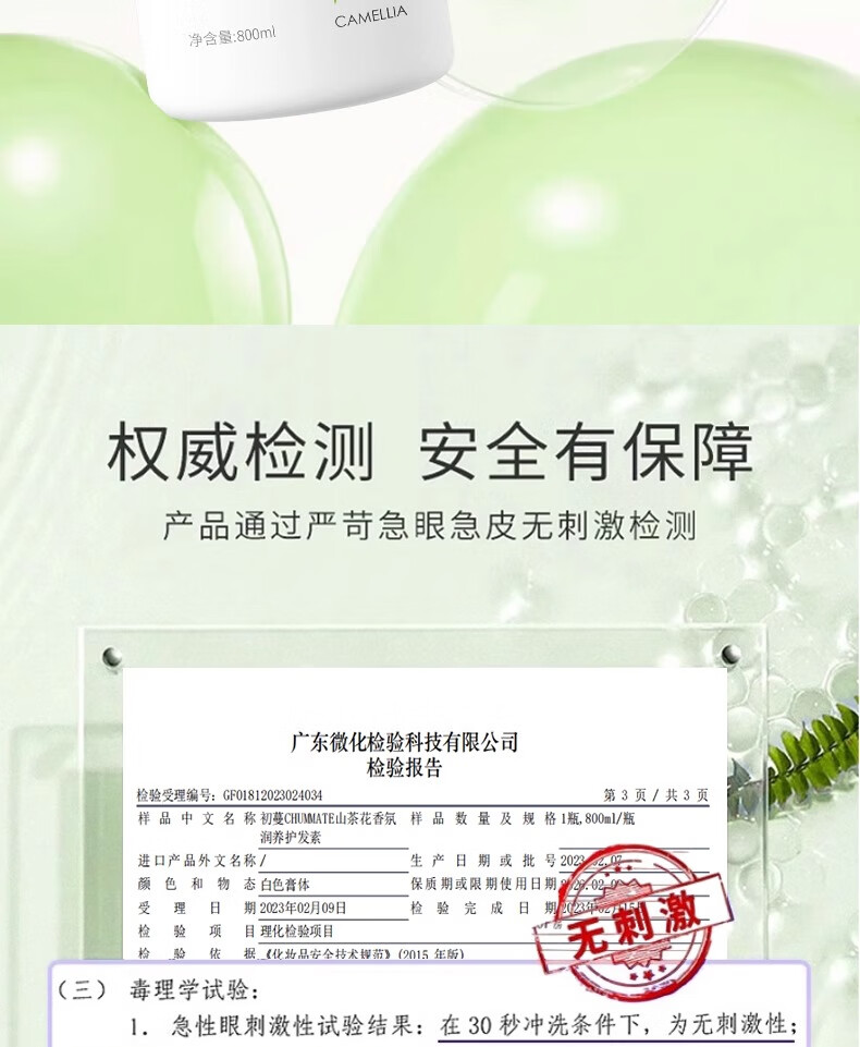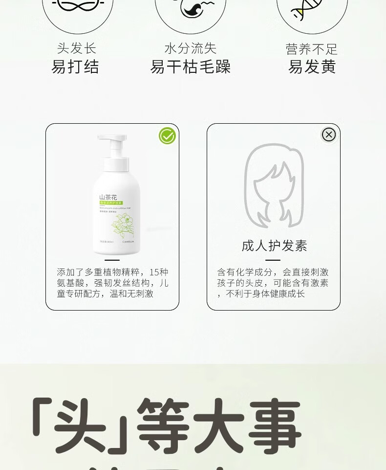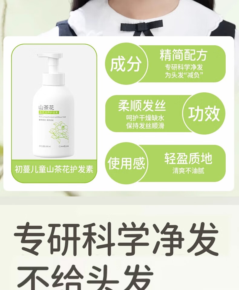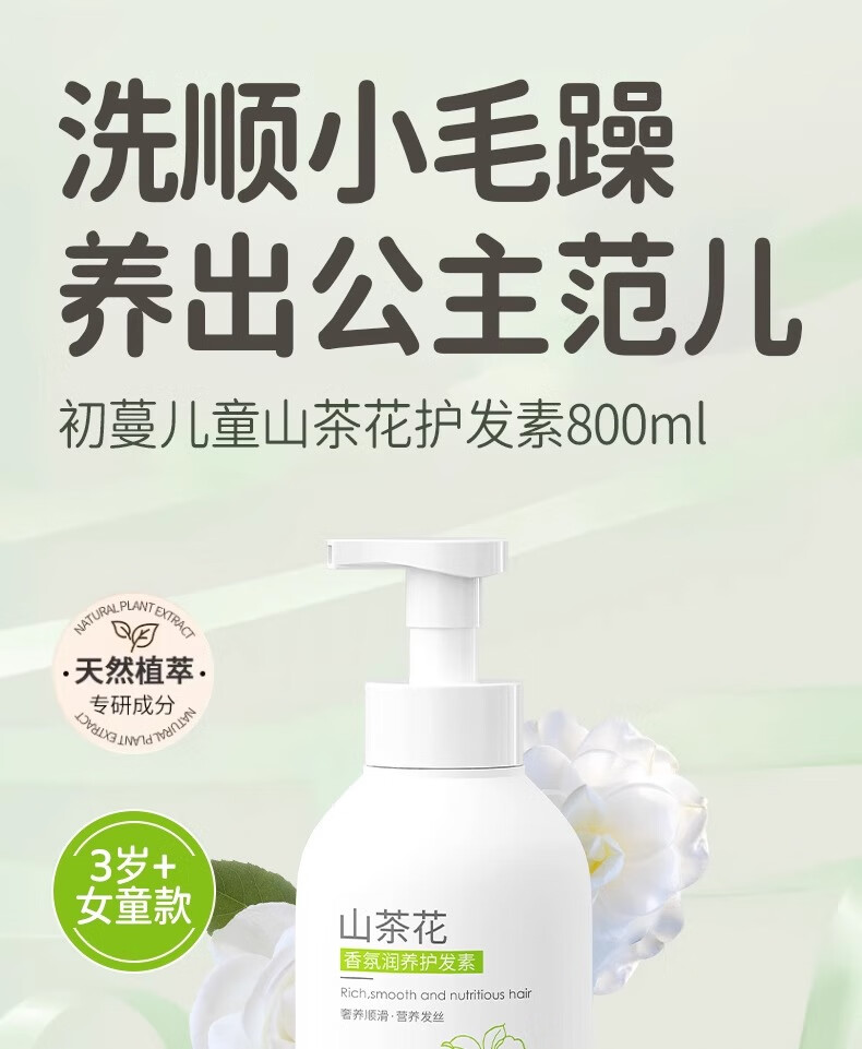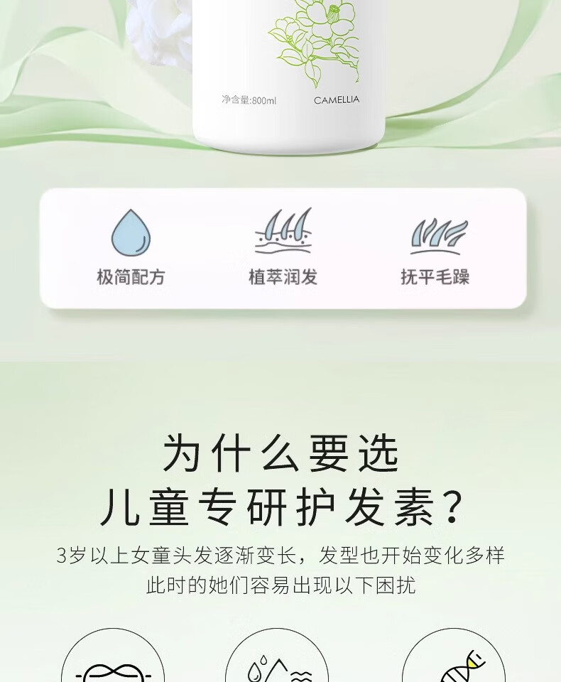 Chuman Children's Hair Conditioner 3-6 Years Old Teenage Girls 6-12 Years Old Protein Hair Mask Smooth and Smooth Repair Dry and Frizzy Camellia Moisturizing Conditioner 800ml*1