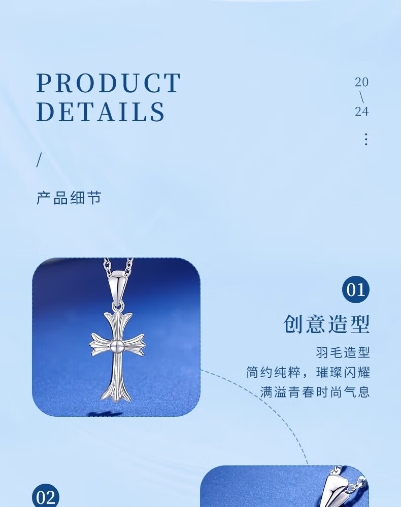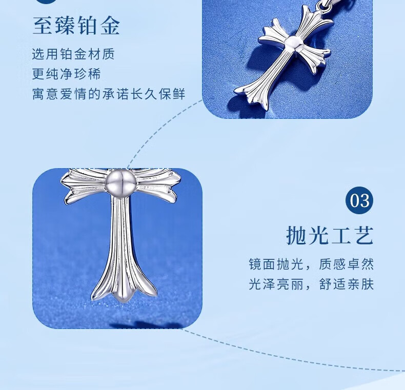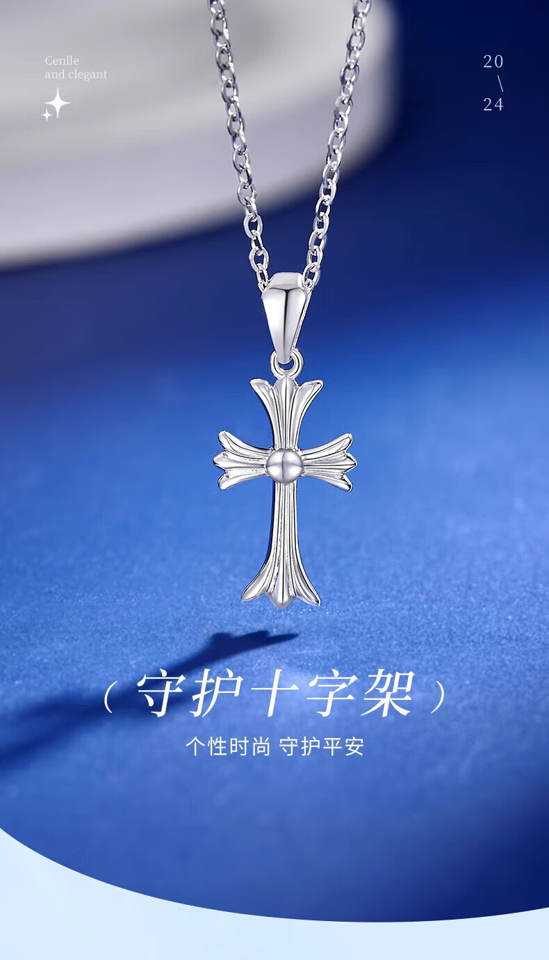 China Gold (CHINA GOLD) Cross Platinum Necklace for Men PT950 Platinum Pendant Clavicle Chain Wedding and Birthday Gift for Girlfriends Cross Platinum Pendant About 2g Free Silver Chain