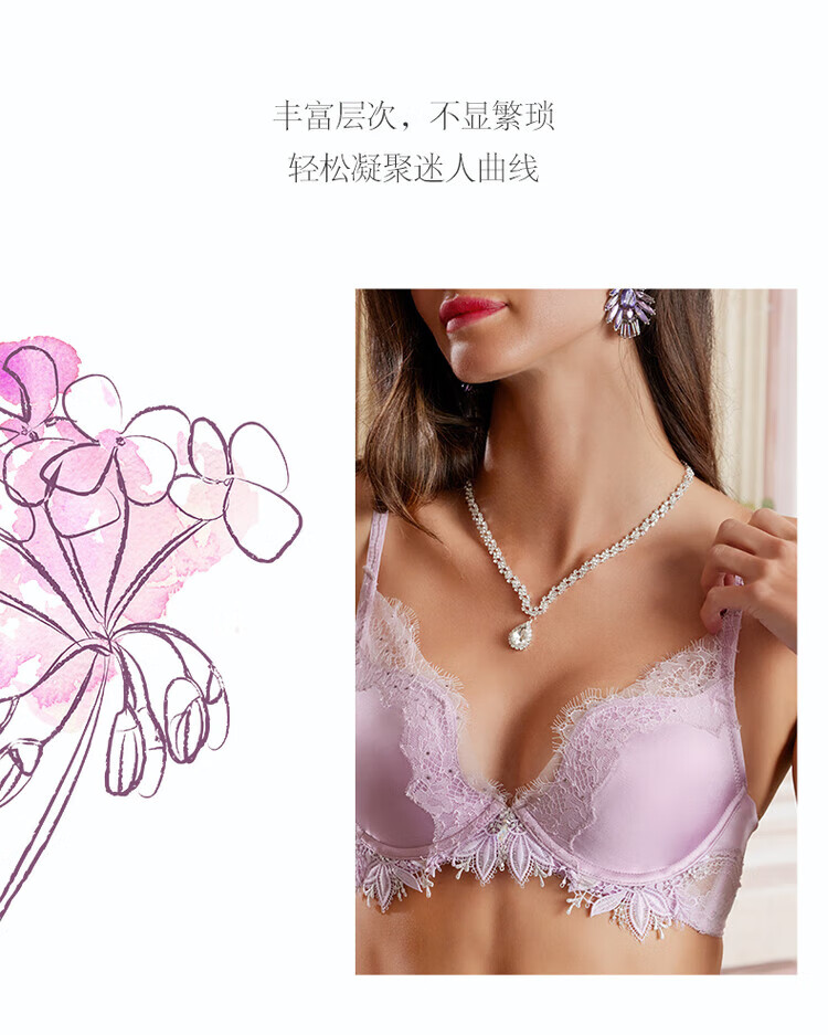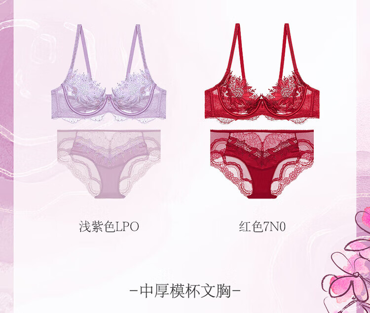 LA CLOVER23AW Beloved Sicilian Luxury Lace Thorn Women's Underwear Bra Set LC2024105 Light Purple-Push-up Thick Cup Underwear Set 75B 160