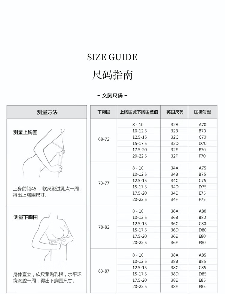 China (cm) 160-165/84-86 165-170 / 88-90 167-172 / 92-96 168-173 / 98-102 170-176 / 106-110