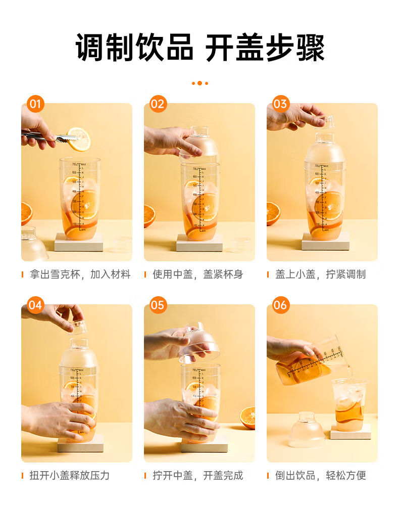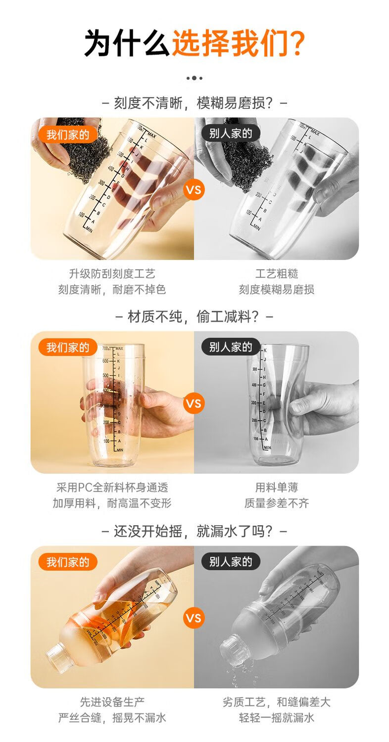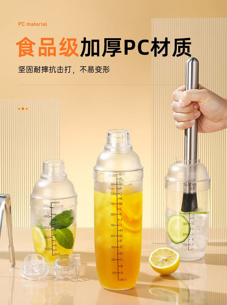 TLIT shaker cup milk tea shop supplies with scale, drop-proof and non-fading hand-crank shaker lemon tea shaker pot set 500ml-1000ml one piece set universal lid