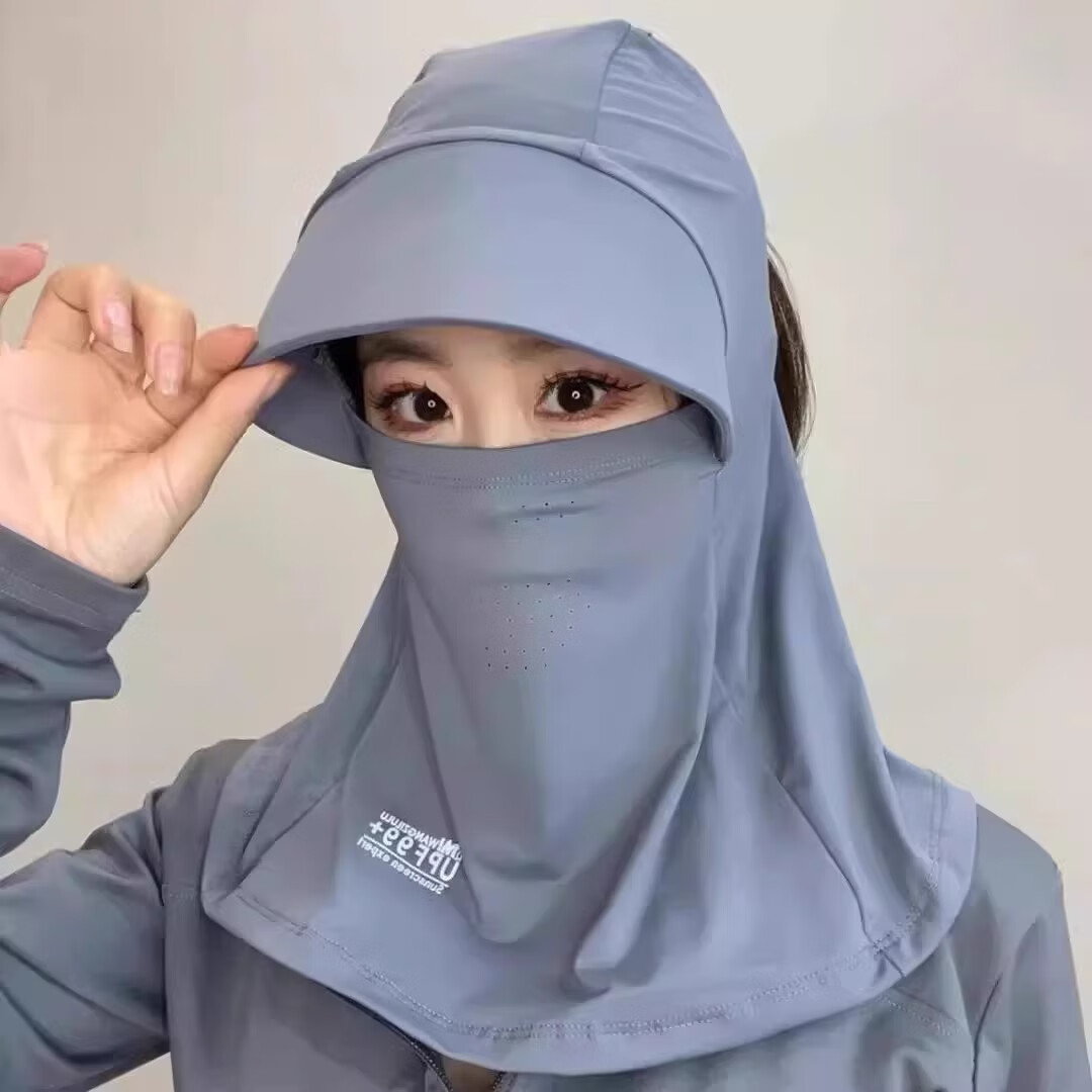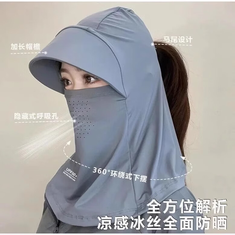 Hot style ice silk breathable sun hat mask integrated face mask covering full face sun hat for women for summer outdoor travel full face sun hat - pink