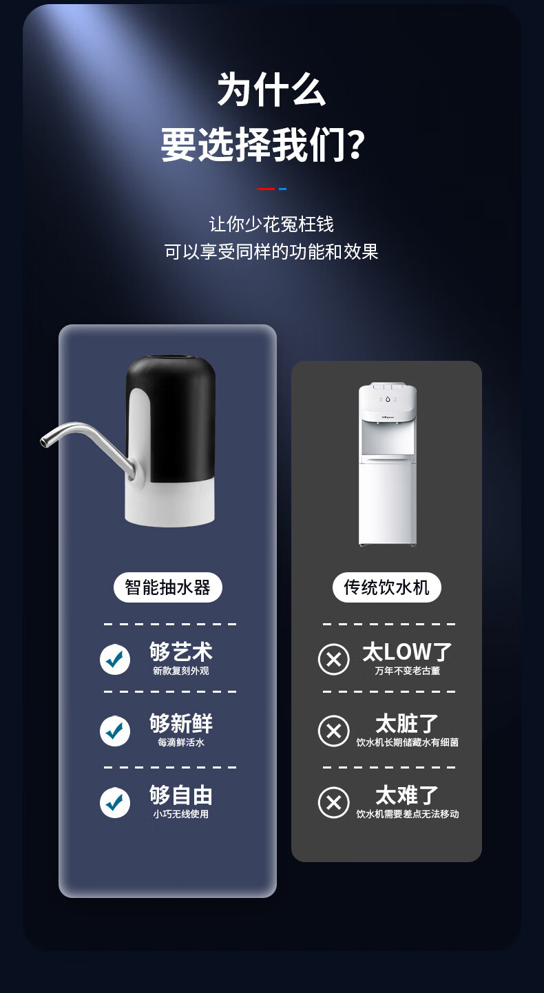 KAIOULI water dispenser, bottled water, mineral water tray, water press, pure water bucket, automatic water absorption, electric water dispenser, dark night black - electric model, long battery life + low decibels